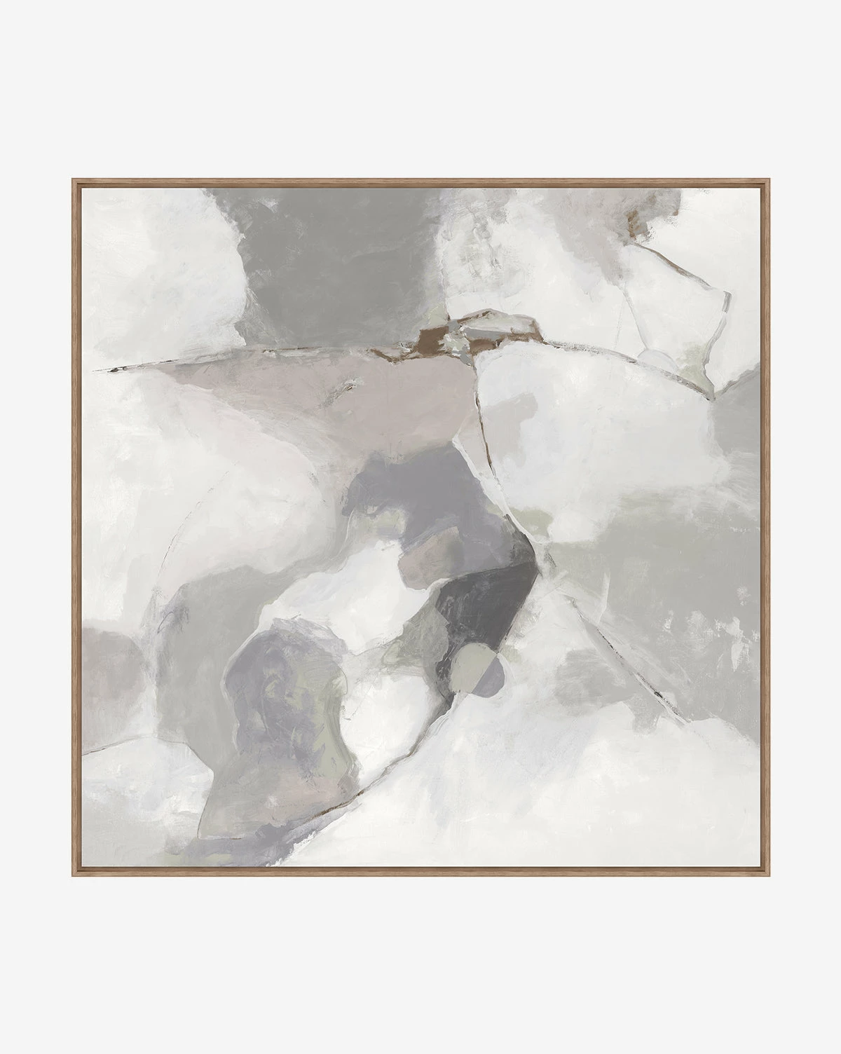 With a dramatic composition, Fractured I takes inspiration from nature, using a calming cool and neutral palette. Framed within natural wood, the piece elevates your decor with its details and museum-quality materials. Â