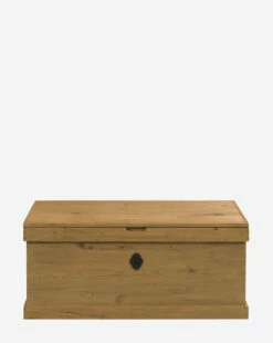 With a classic design, the Frances Trunk is made with a natural oak veneer, showing off the intricate detail of organic woodgrain. Antiqued black hardware brings contrast to the warm wood frame, which is spacious enough to provide practical storage space for your home.