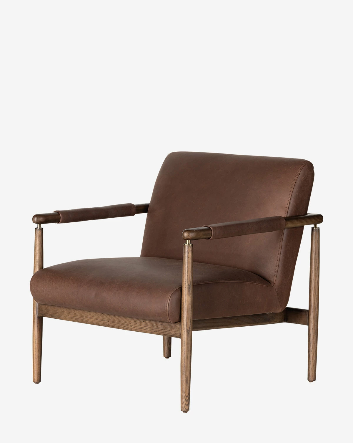 A study in mixed materials, the Gaston Lounge chair is both sophisticated and luxurious. From the top grain leather cushions to the solid ash frame with iron accents, the chair provides a welcoming yet moody element to your styling.