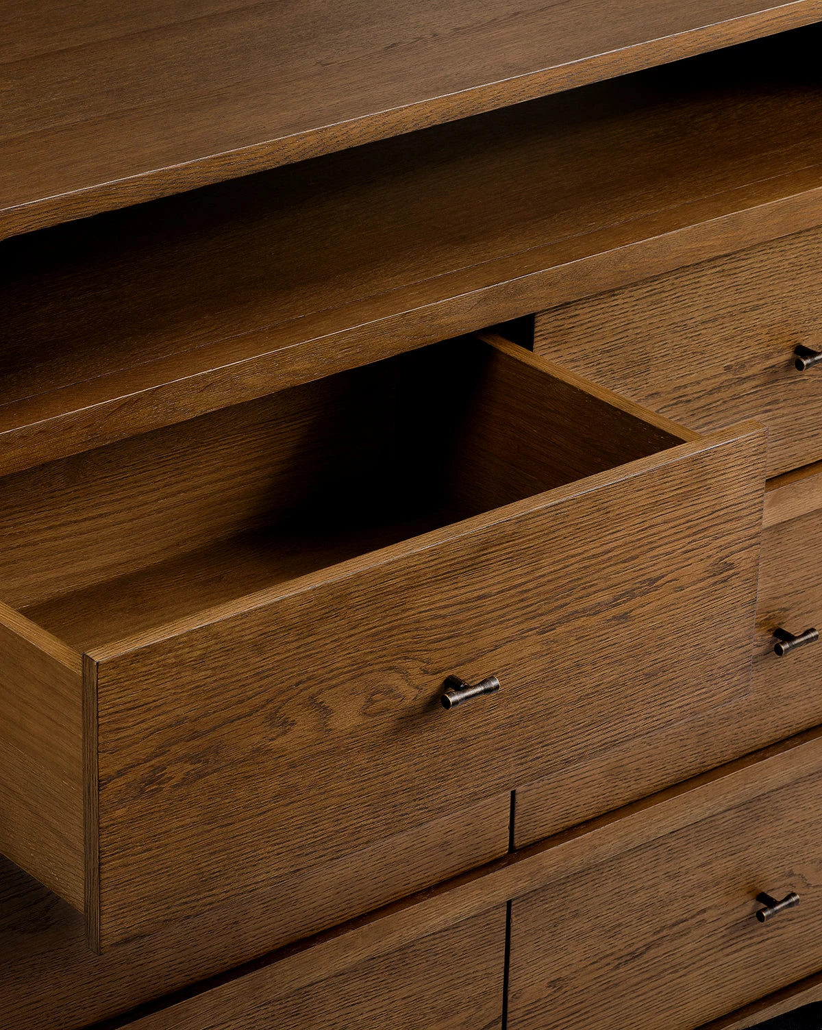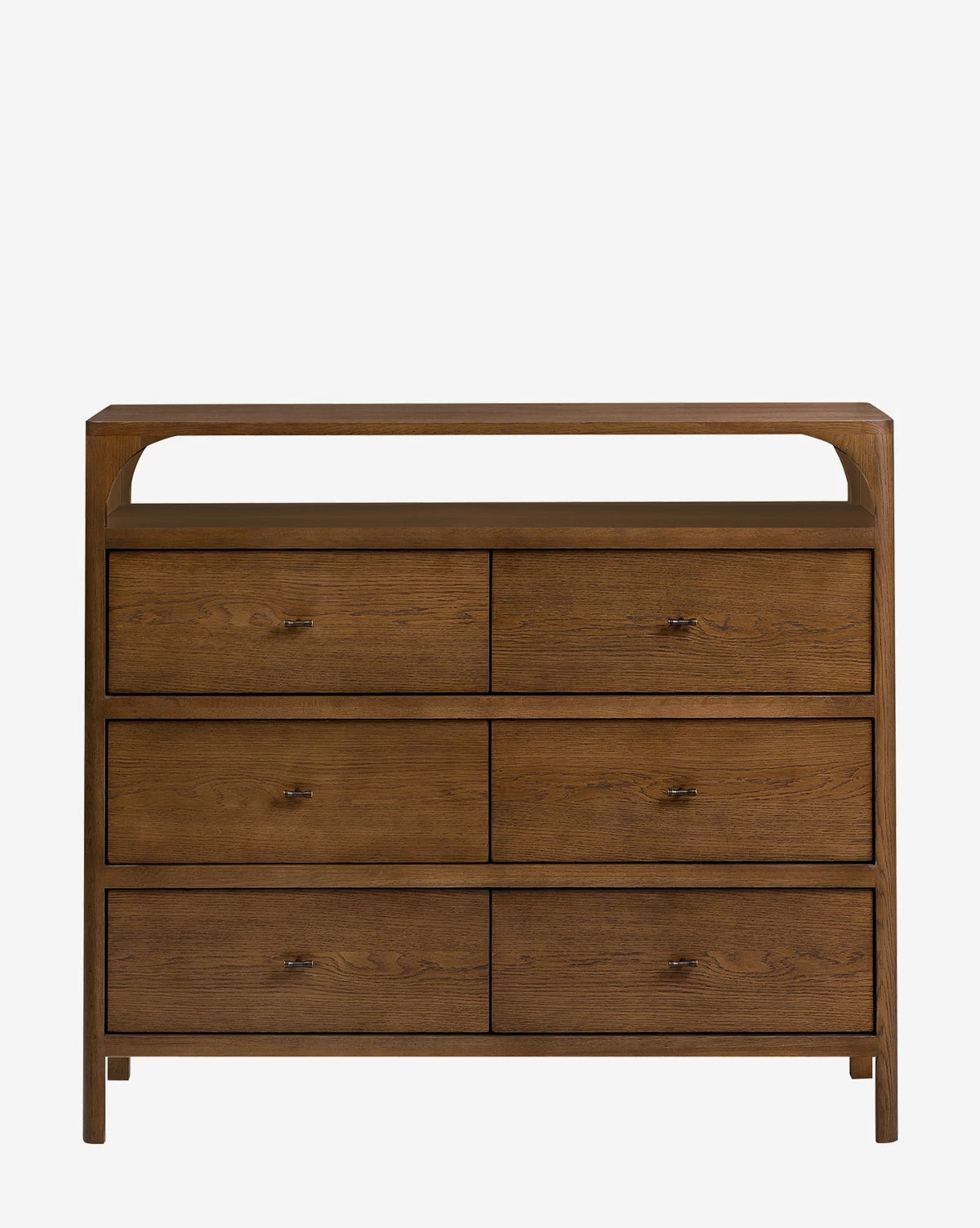 A traditionally inspired design with distinct details brings a modern-meets-antique feel to bedroom styling with the Geneva Dresser. Six drawers provide practical storage while the open shelf lends dimension and sophistication to your space.