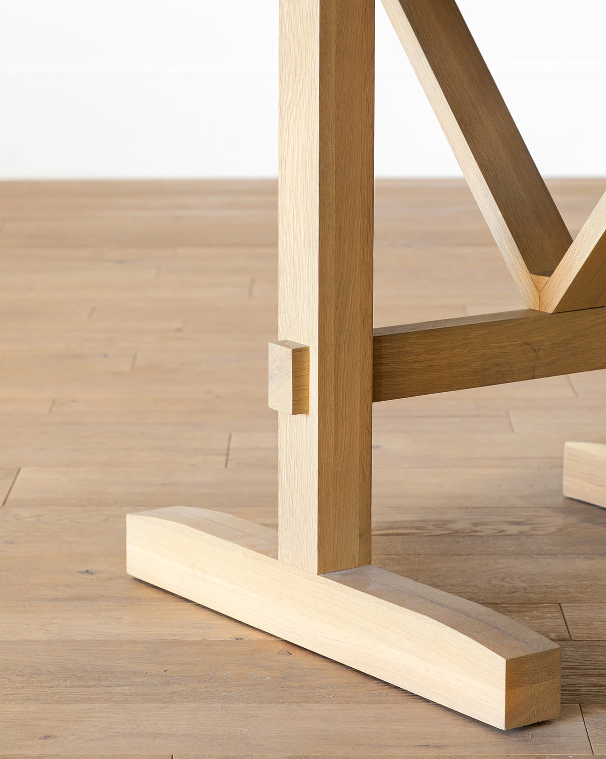Smooth curves and beautiful craftsmanship take center stage in our Giselle Round Dining Table. Constructed from kiln-dried white oak, this table brings both form and function to your dining space with its architectural shape. Inspired by the traditional round table, the top features a play on mortise and tenon joinery above the legs on either end. Whether hosting formal dinners or enjoying everyday family time, this piece stands the test of time as it grows with your family from memory to memory.