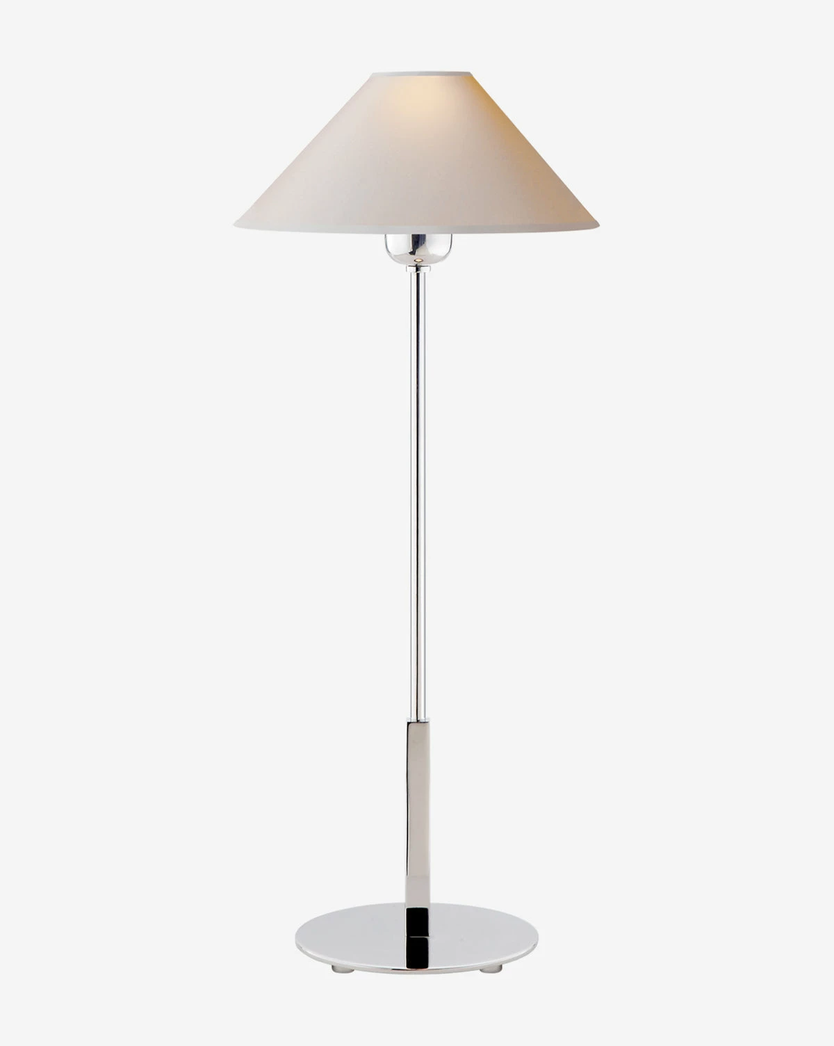 With a sleek and classic form, the Hackney Table Lamp is striking and functional. The brass body gives the sconce a vintage feel in any finish, while the circular base and linen shade give it an approachable feel.