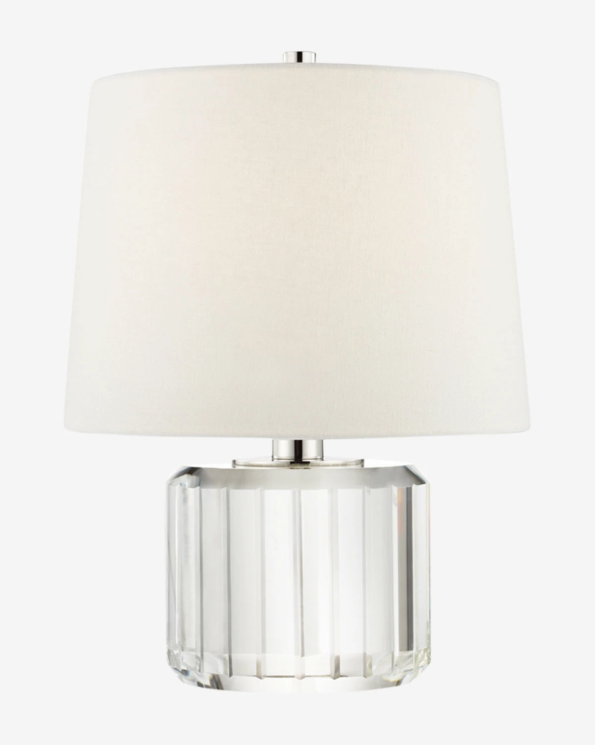 Make a statement on your side tables with the Hague Table Lamp. Designed with blocks of furrowed glass and given a nickel finish, the unique design of the Hague Table Lamp gives dimension and expression to your space. Topped with a simple, classic linen shade that contrasts the detailed base, this table lamp brings elements of modernism to your space.