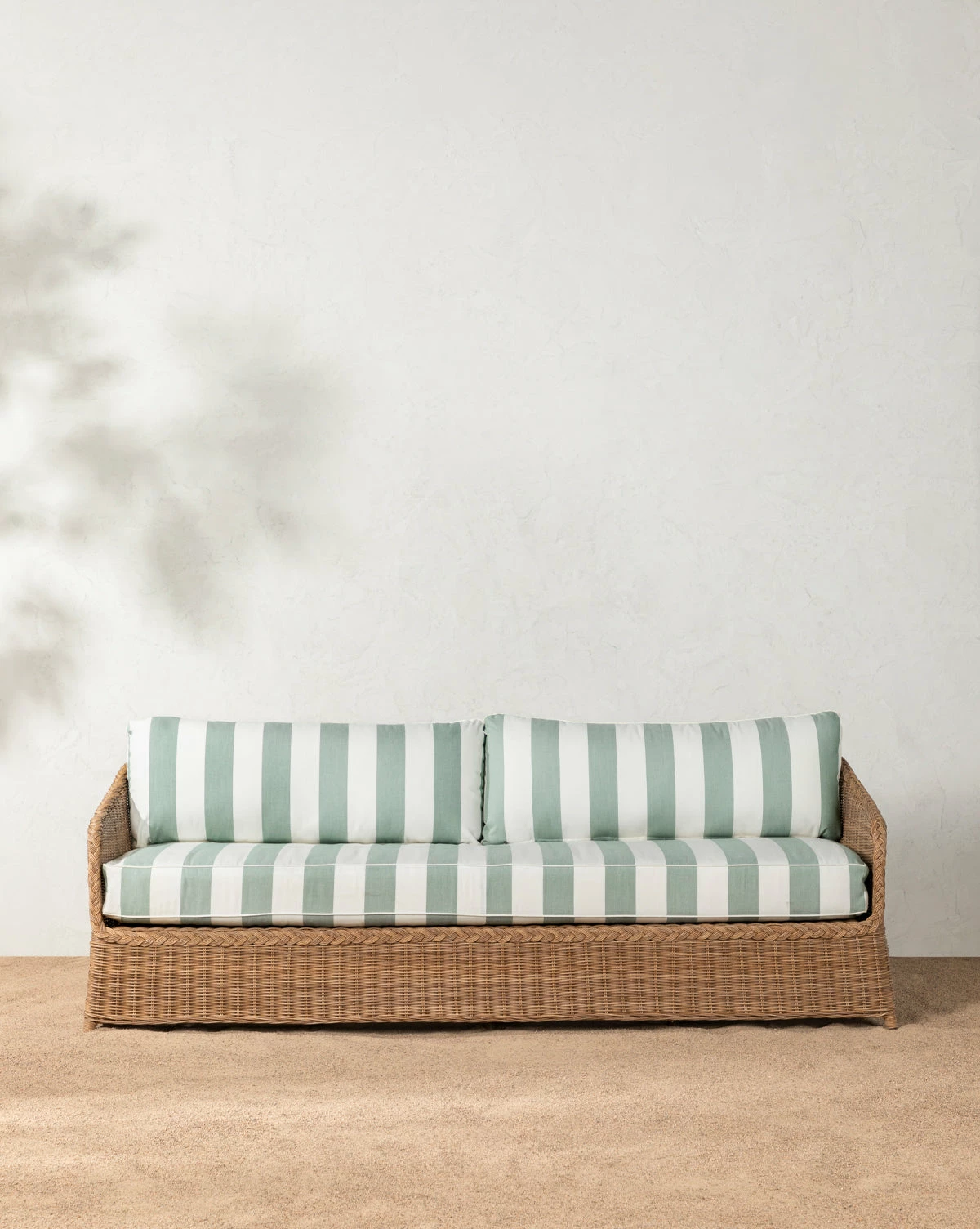 Crafted from woven wicker around an elegant metal frame, the Haviland Outdoor Sofa with Striped Cushions offers organic aesthetic and weather resistance to outdoor lounging. Complete with boxed seat cushions and knife edged back cushions, we designed this sofa to bring enduring comfort and beauty to your outdoor spaces.