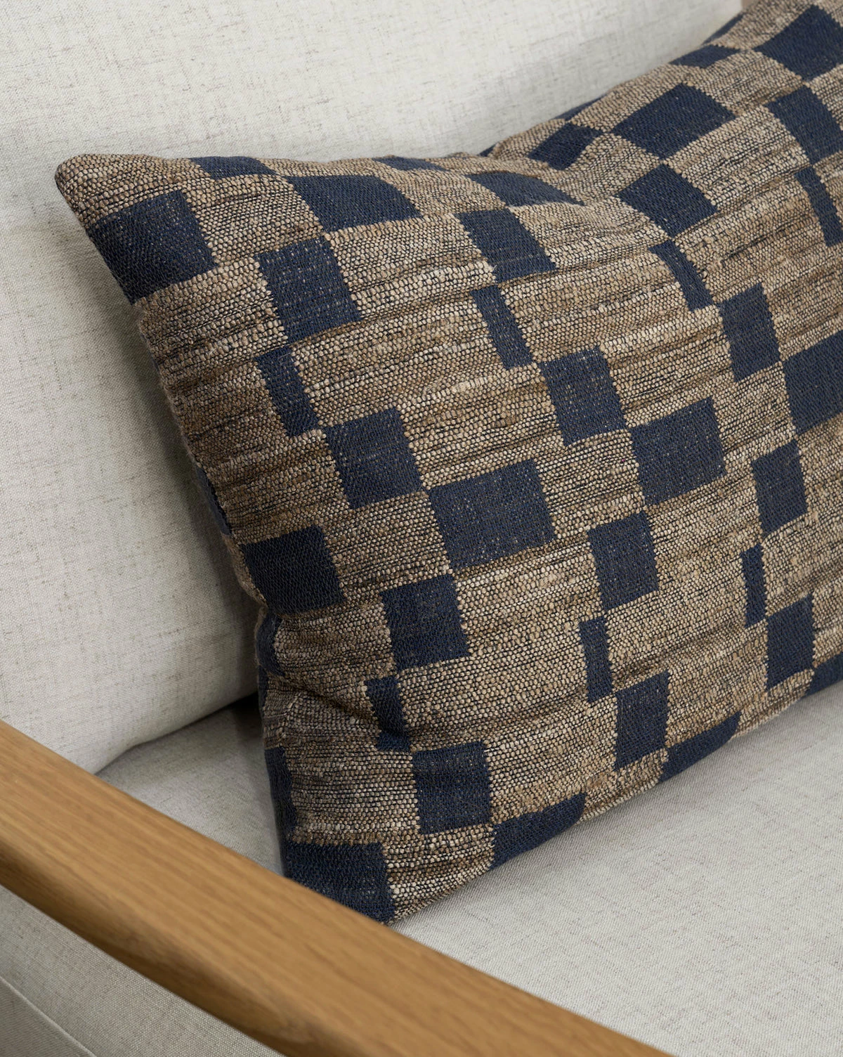 Our Hedgerow Navy Pillow Cover is hand-woven from a wool and silk blend with a stunning tan and navy palette. Its geometric motif is eclectic and sophisticated, adding an elegant and layered look to your sofas or beds.