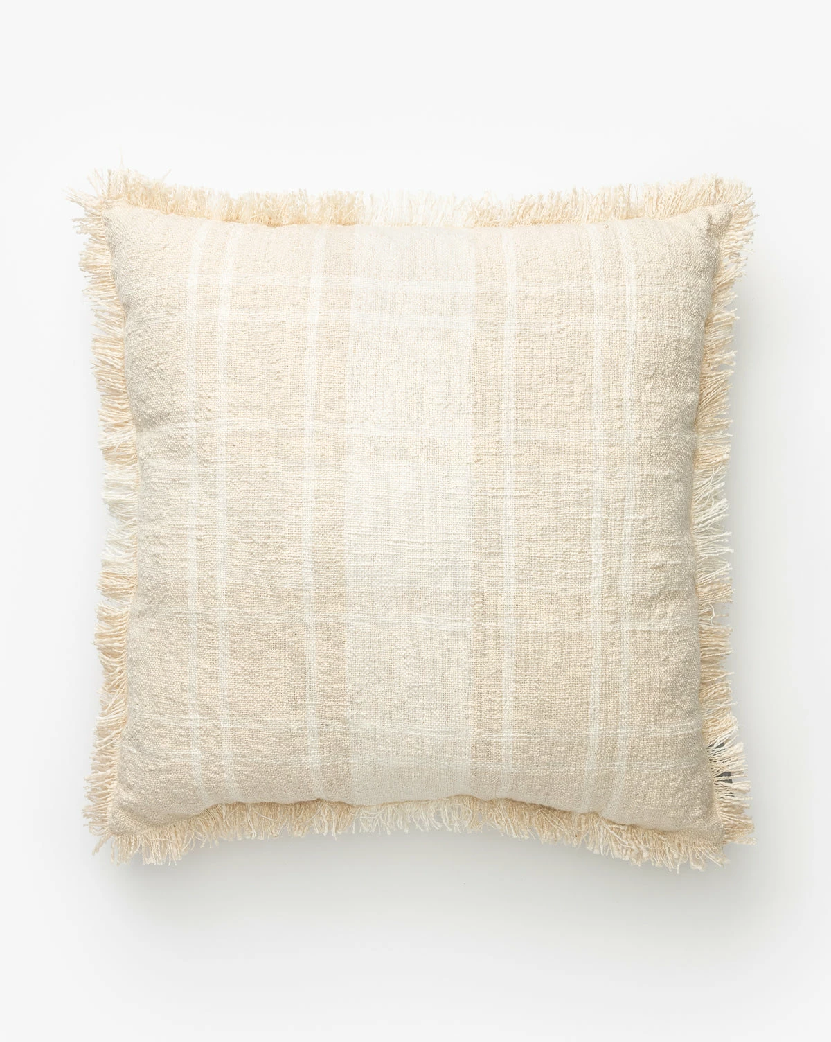 With a textured and neutral plaid motif surrounded by subtle fringe, the Hugo Indoor/Outdoor Pillow brings a welcoming feel to your outdoor decor. Crafted to be both soft to the touch and weather resistant, this pillow is as durable and versatile as it is beautiful.
