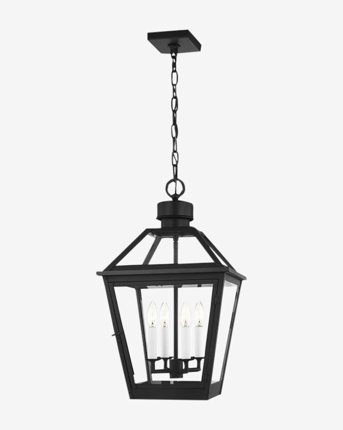 In a variety of finishes, the Hyannis Outdoor Pendant borrows from traditional design to create a fixture that will last — both in use and style. With a classic lantern shape suspended from a metal chain, this piece is filled with four distinct candle lights that contribute to its timeless feel. Crafted to withstand outdoor elements, this pendant is rust-proof.