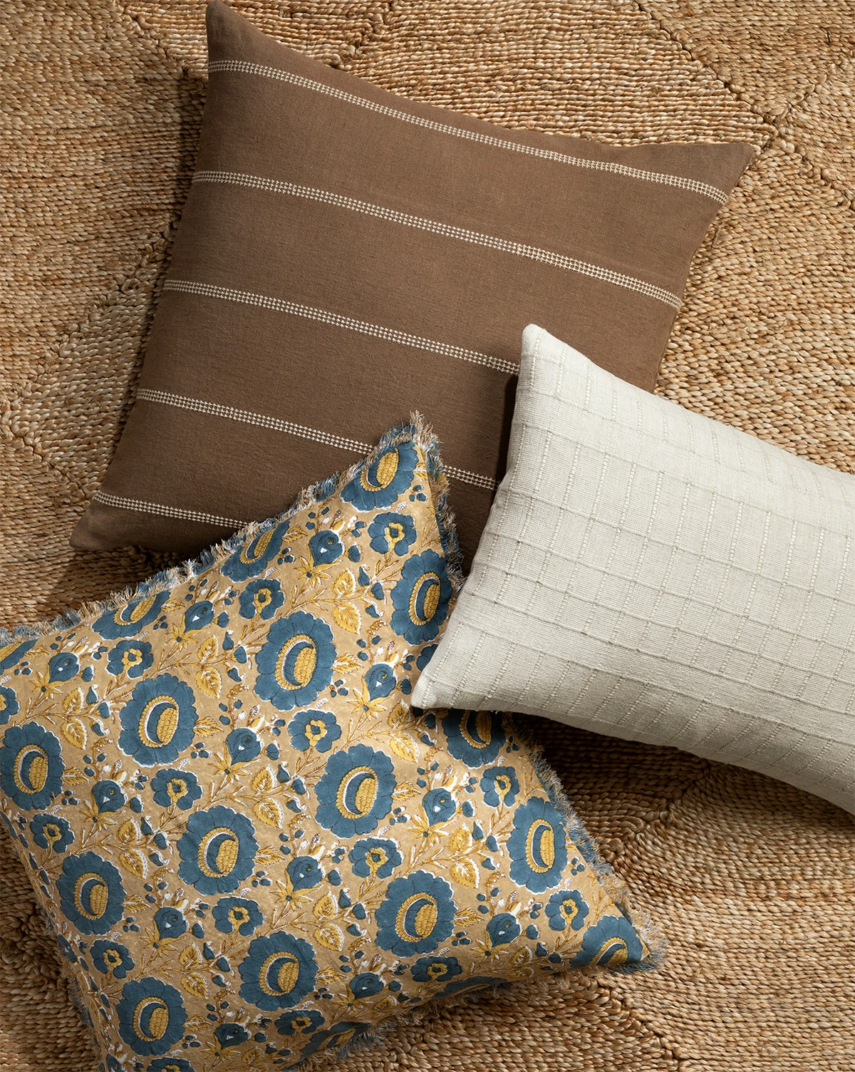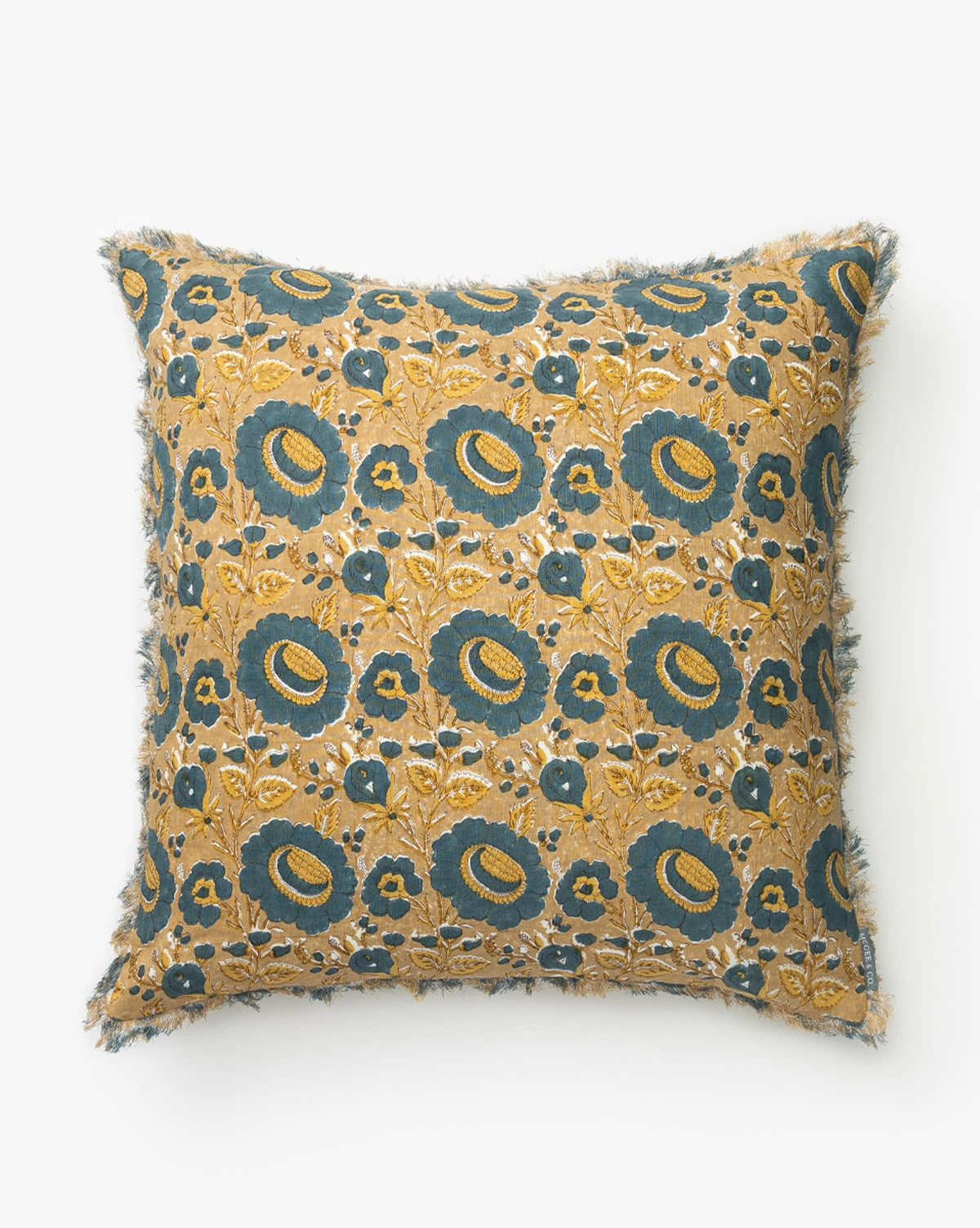 With a warm background and bright flowers, the intricate motif of the Imogen Pillow Cover brings subtle beauty to your pillow vignettes. Made from a linen and cotton blend with a subtle fringe, the block-printed floral pillow cover is both sophisticated and whimsical.