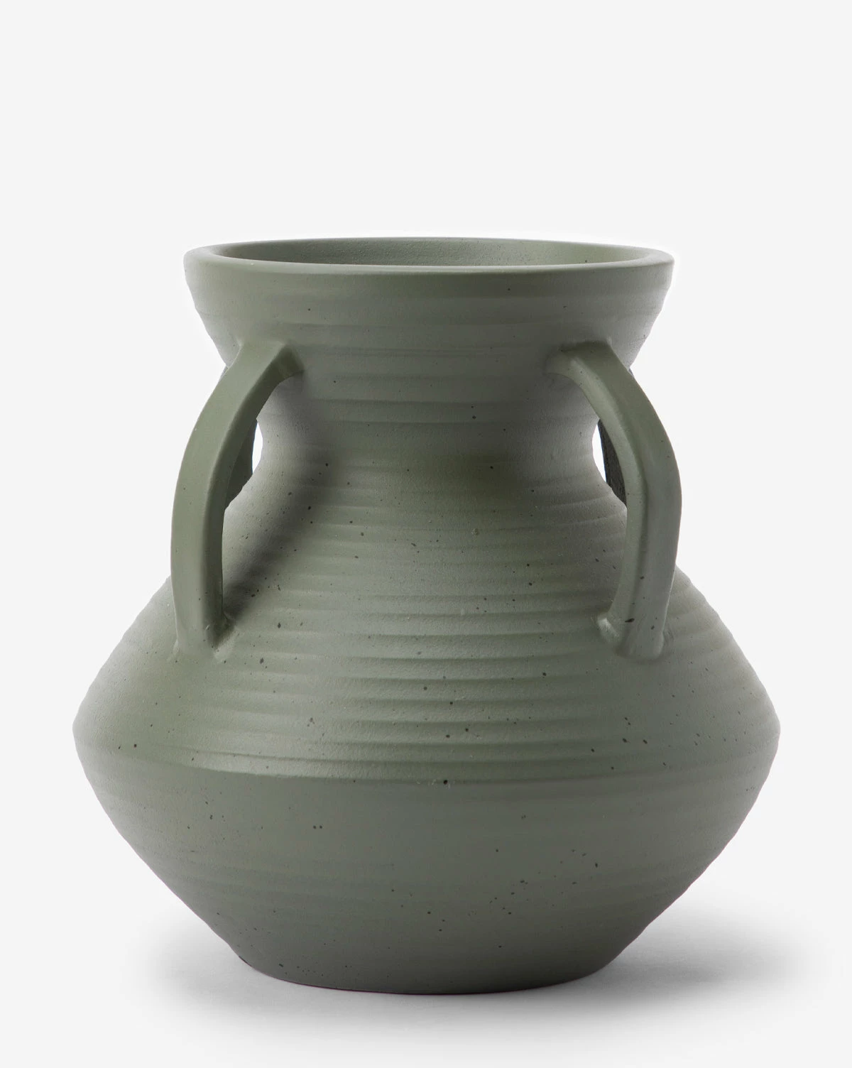 Striking and elegant, the Isaiah Vase has a unique silhouette that brings a sophisticated feel to your vignettes. Crafted from ceramic with a hand-applied agave green glaze, the vase is a styling must with its dramatic shape and cool tone.