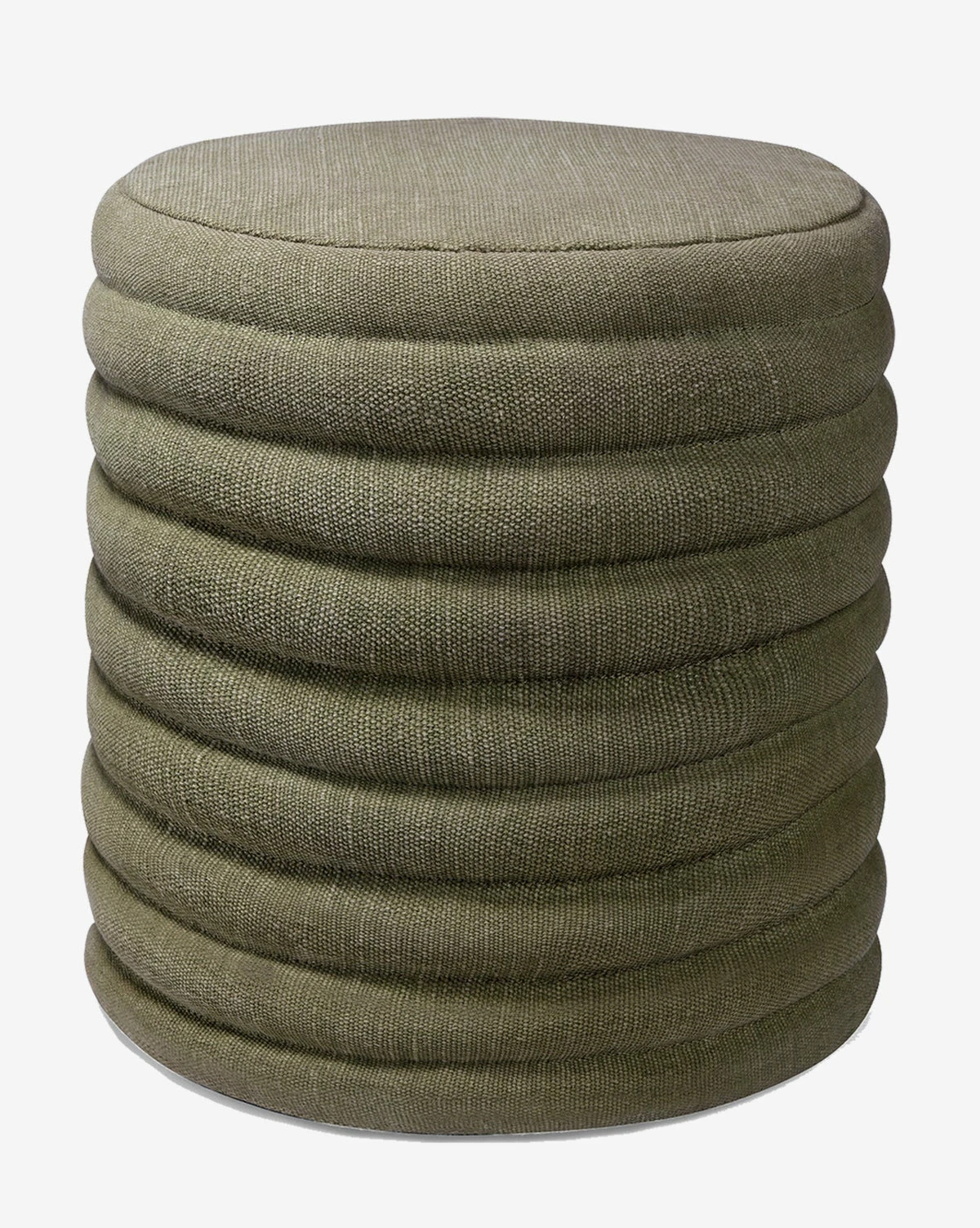 Crafted from cotton jute, the Jefferson Stool has a sophisticated, cylindrical form and quilted feel. Its form is abstract and comfortableÑa unique design that gives a subtle nod to mid-century styles.