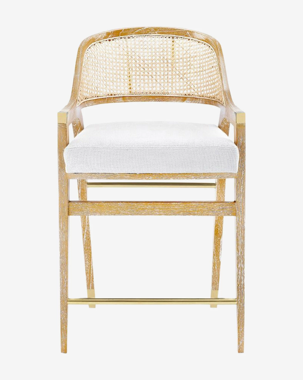 Borrowing from classical design, the Jensen Counter Stool reimagines the classics from a modern perspective. With a frame of solid Cape Lilac Mahogany and a hand-woven cane back, the chair is finished with hand-cast bronze sabots and arm caps.
