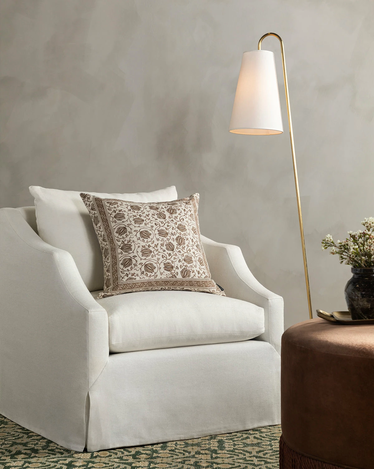 With neutral browns and flowers, the muted palette of the Jolie Floral Pillow Cover brings softness to your pillow vignettes. Its floral pattern is both intricate and whimsical and is framed with a classic border full of vine-like details that adds character to your display.