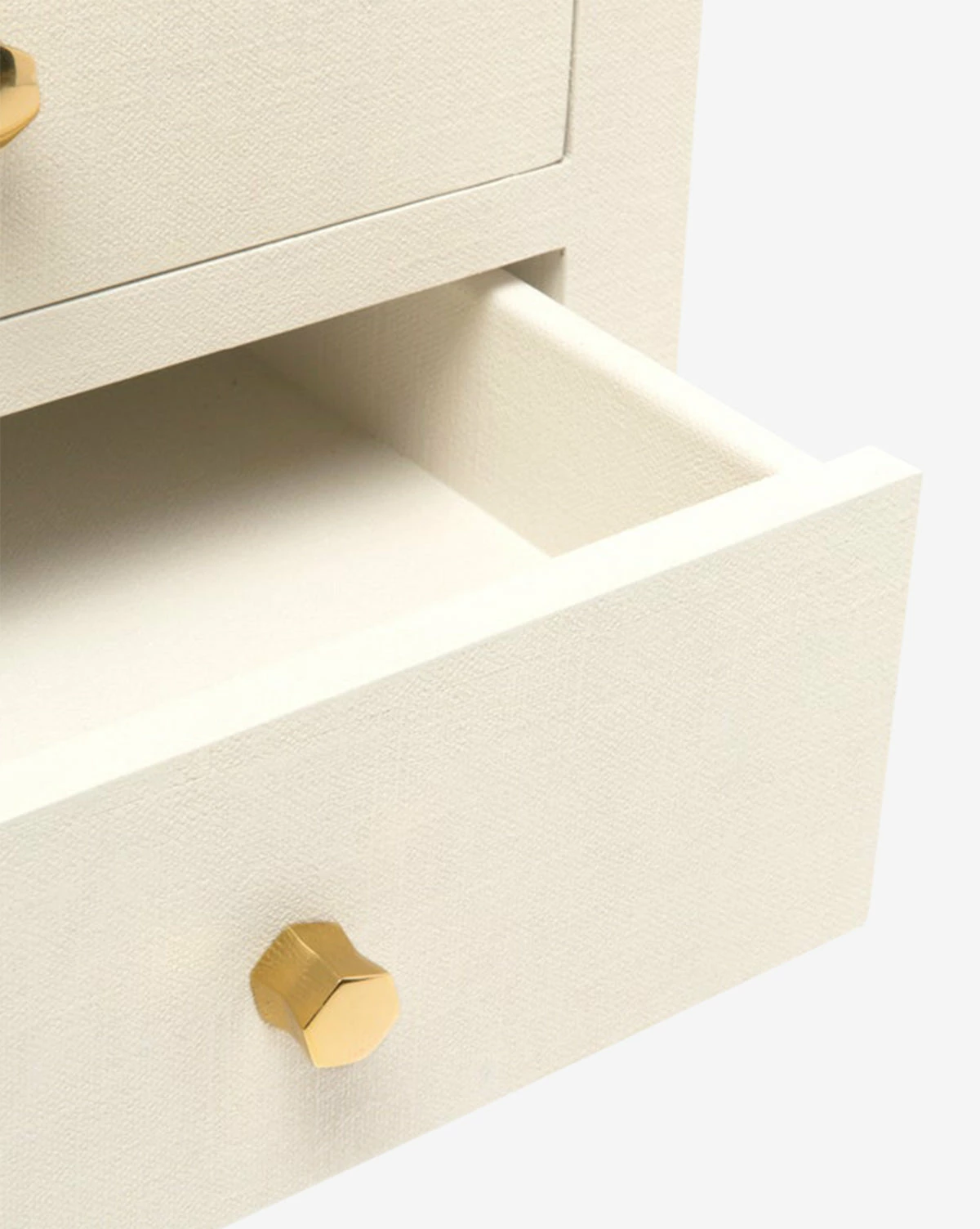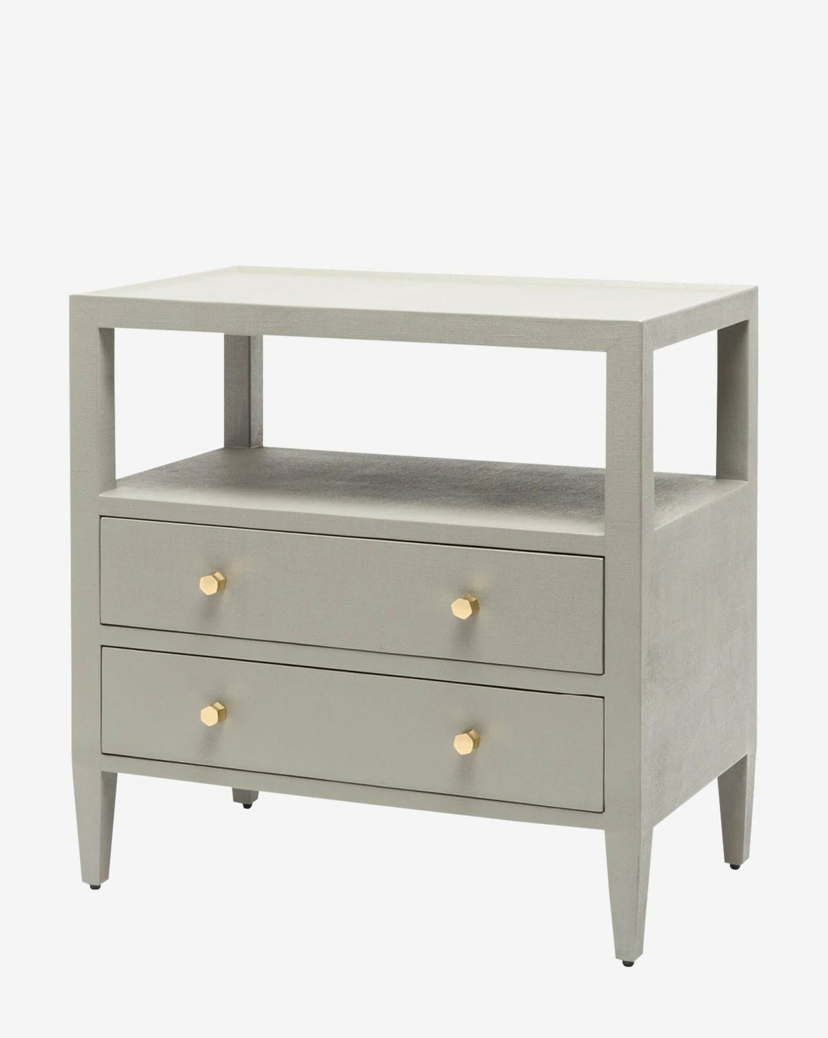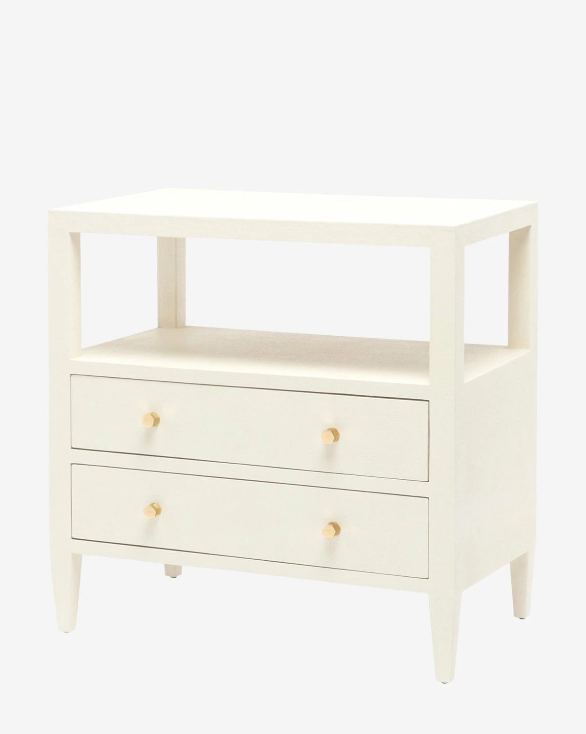 It’s hard to nail down our favorite thing about this dresser but its open-air shelf has to be it. It maximizes display space for your favorite books and accessories, while also providing ample storage space. And we can’t get over the gold pulls and faux Belgian linen finish either.