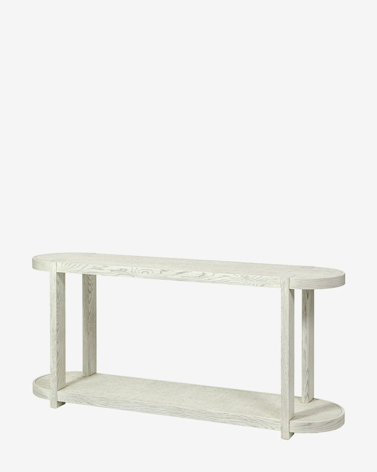 The Julen Console table mixes minimalism and a modern coastal feel for a bold design statement. A whitewash finish and raffia inlay tabletop bring balance to its wood frame to lend a light and airy feel, wherever it is styled.