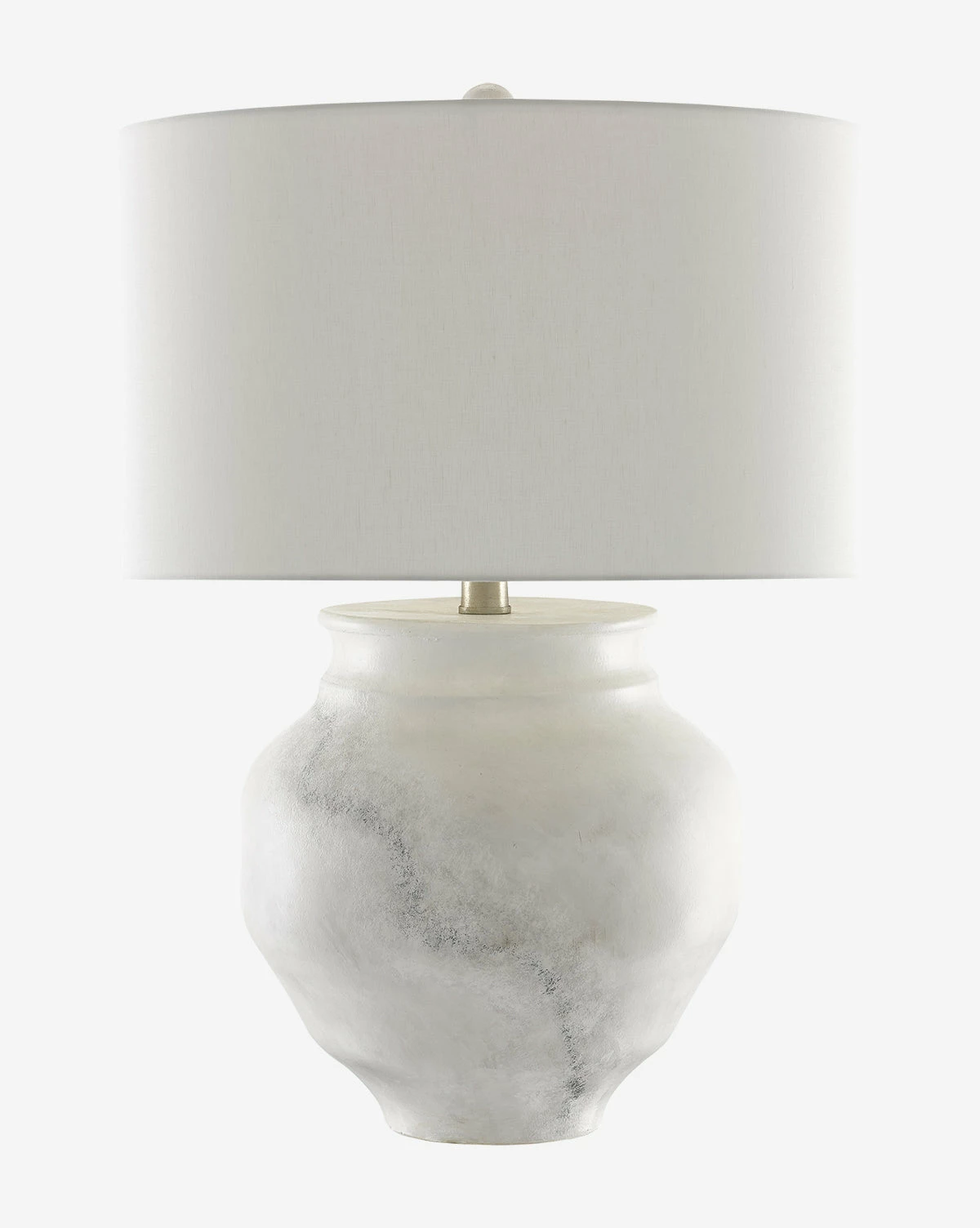 Crafted with a high-end feel, the Kalossi Table Lamp features a marble look, though its base is crafted from high-quality terracotta. Its marble-like texture has been hand-applied by skilled artisans making each lamp one-of-a-kind. Finished off with a white shantung shade, this fixture instantly elevates your home design.
