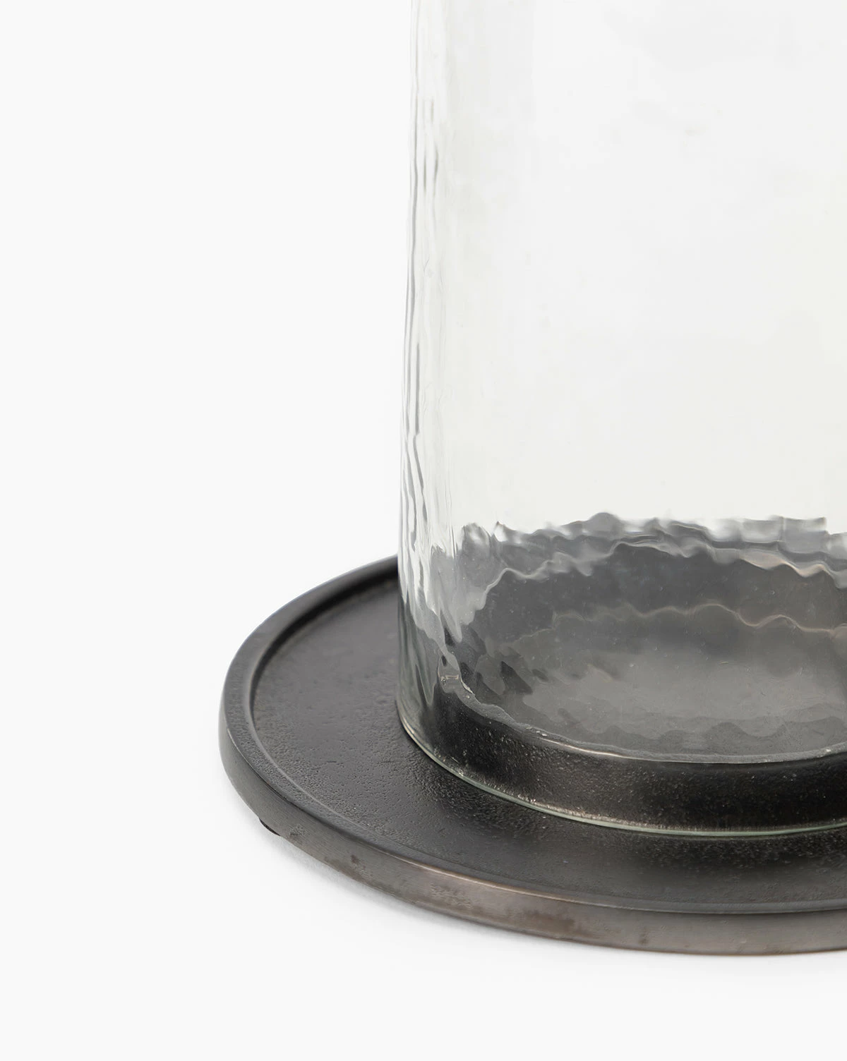 Bring light into your space with the sleek Kassia Candle Holder. Made from glass with an aluminum base in an antique zinc finish, the candle holder lends subtle detail to your candle displays from countertops to console vignettes.