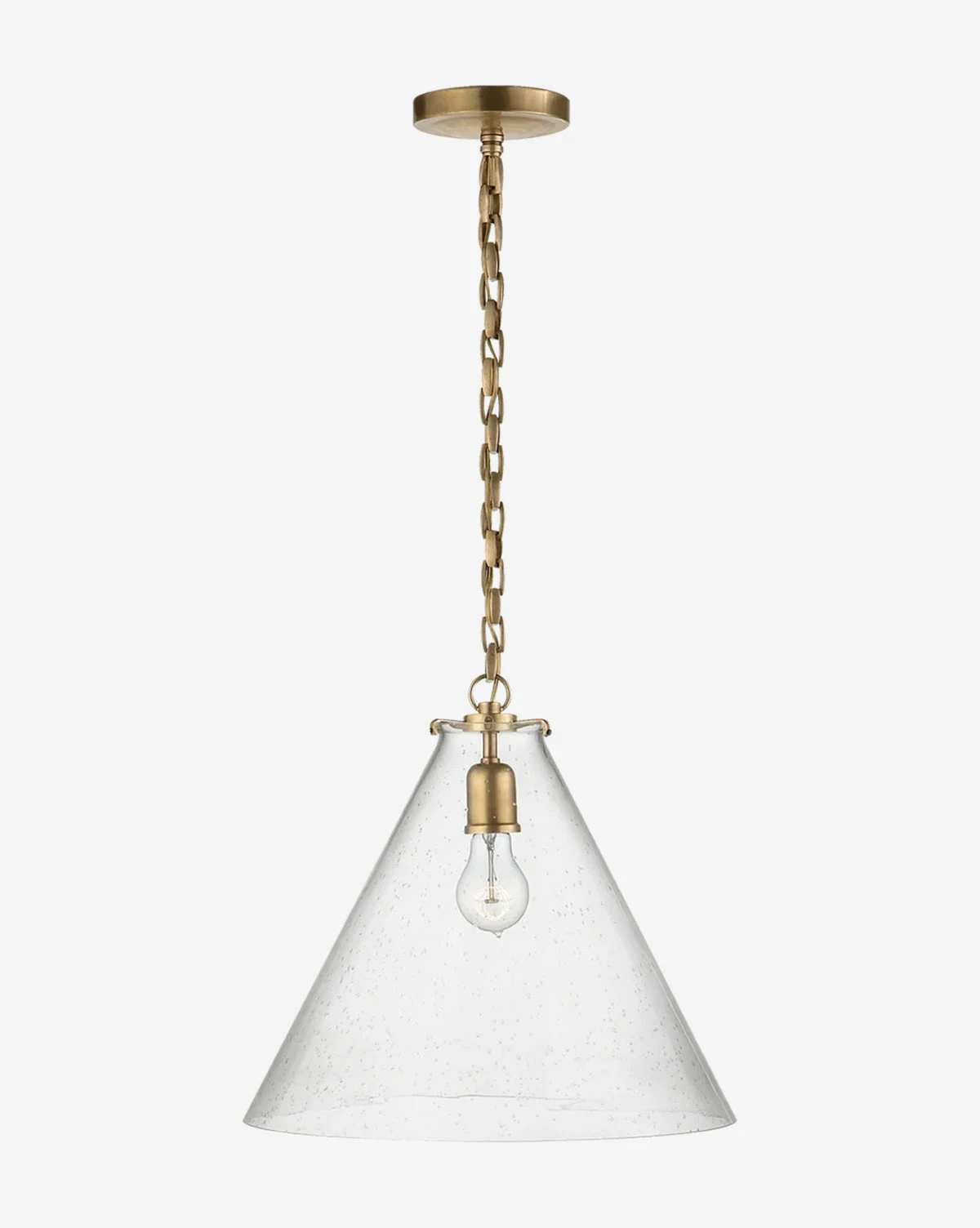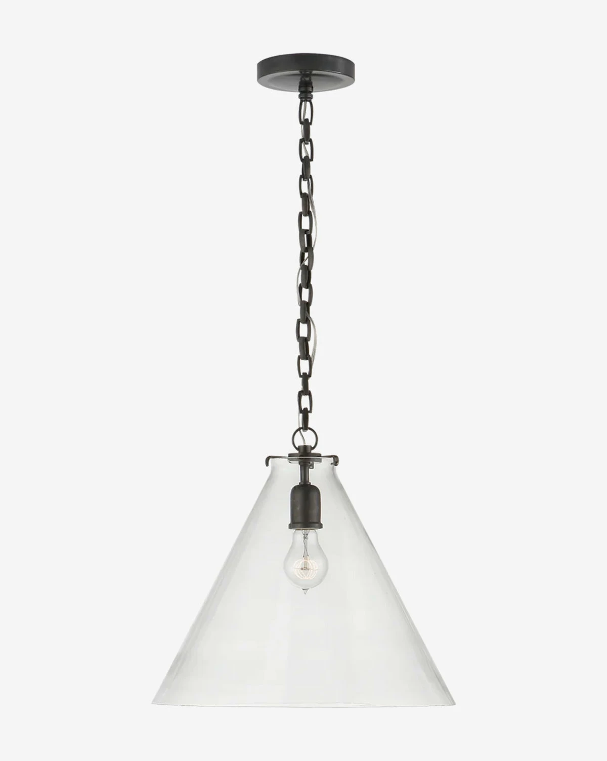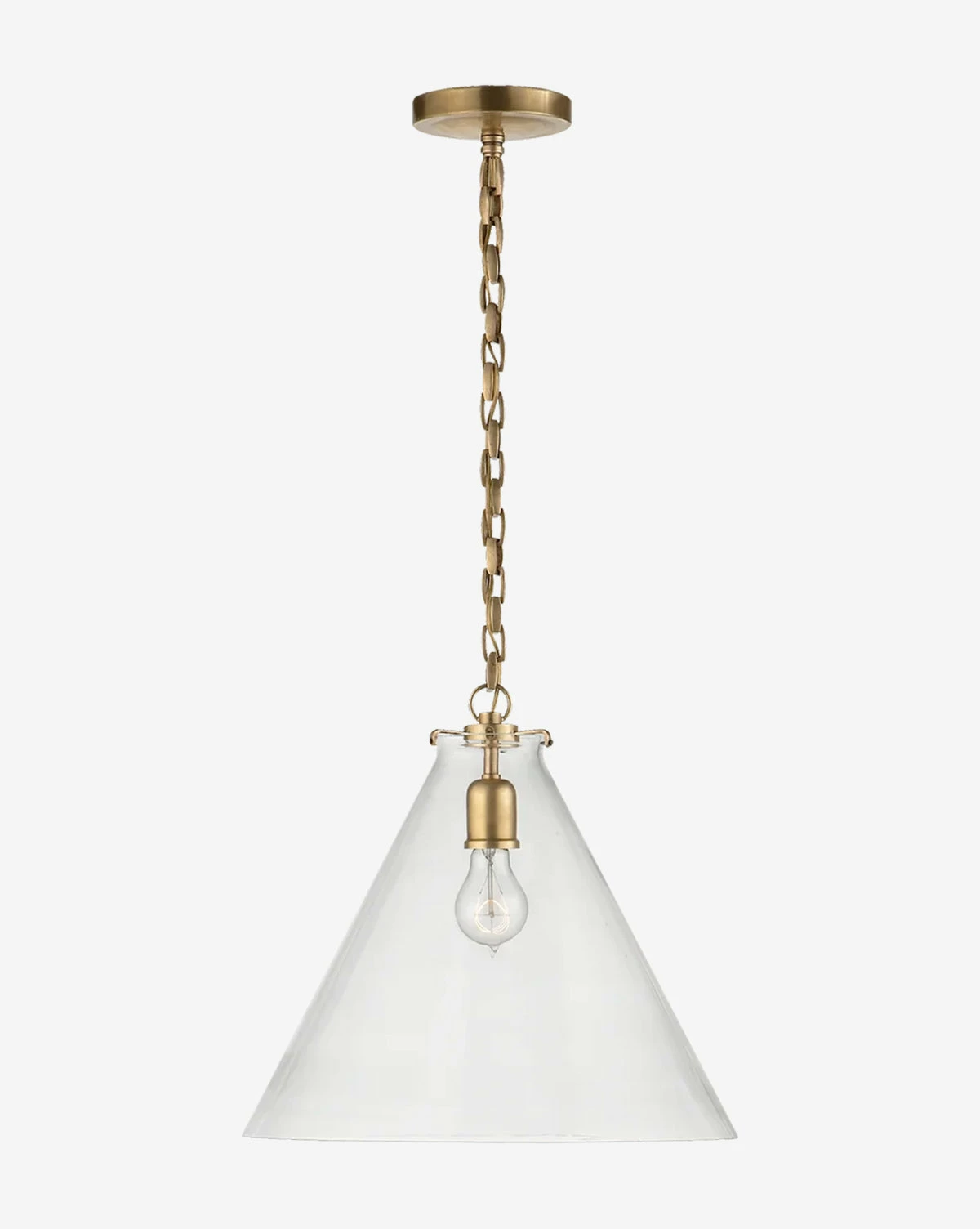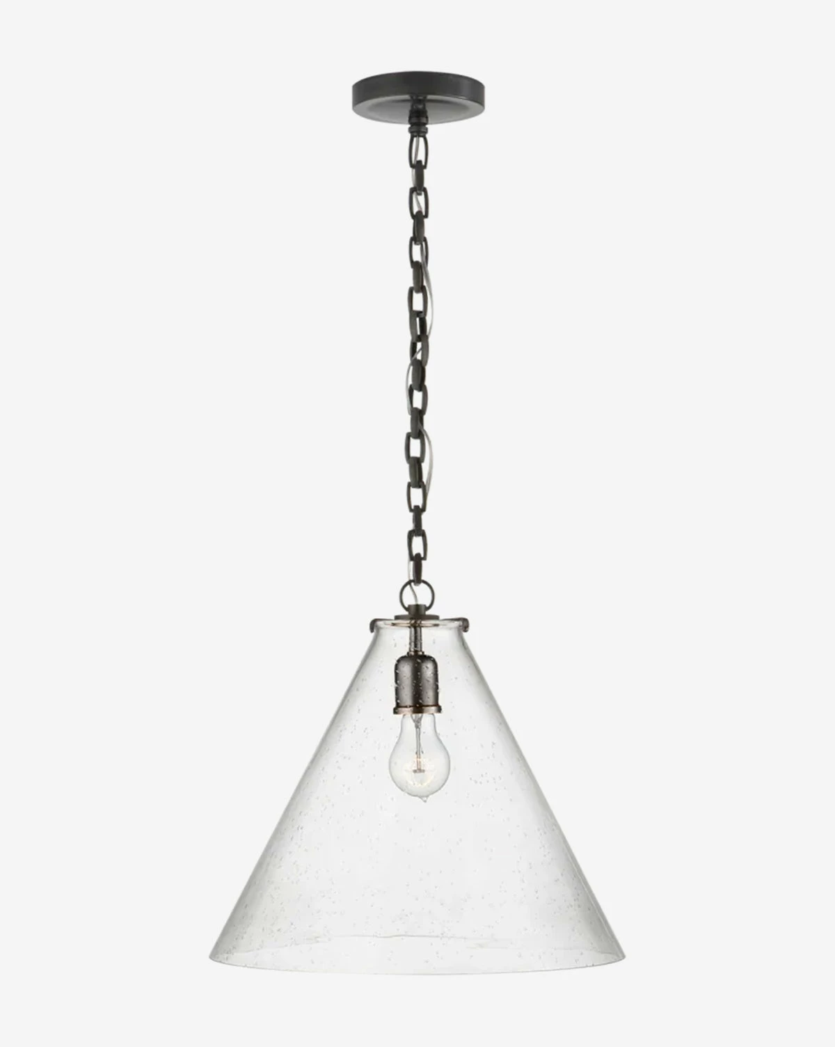 We love the clear glass that wraps this light, exposing the bulb and making a cool industrial accessory that will steal the show no matter where it hangs.