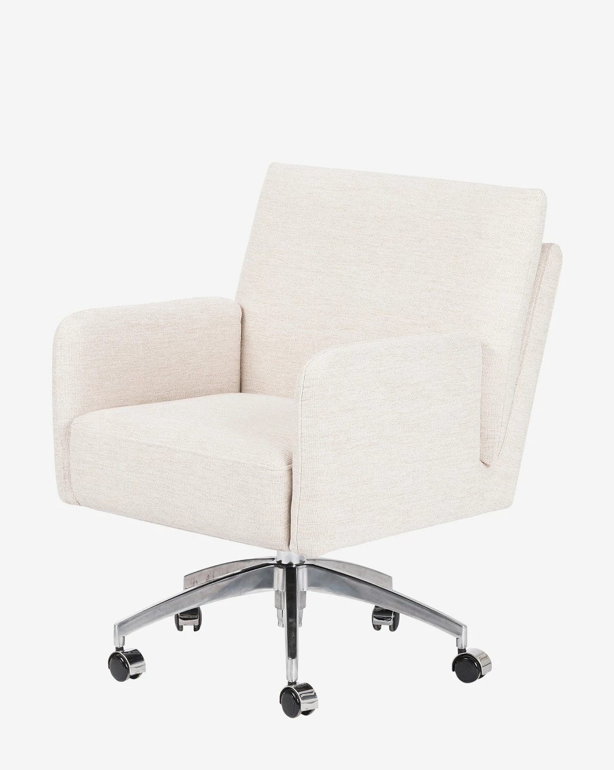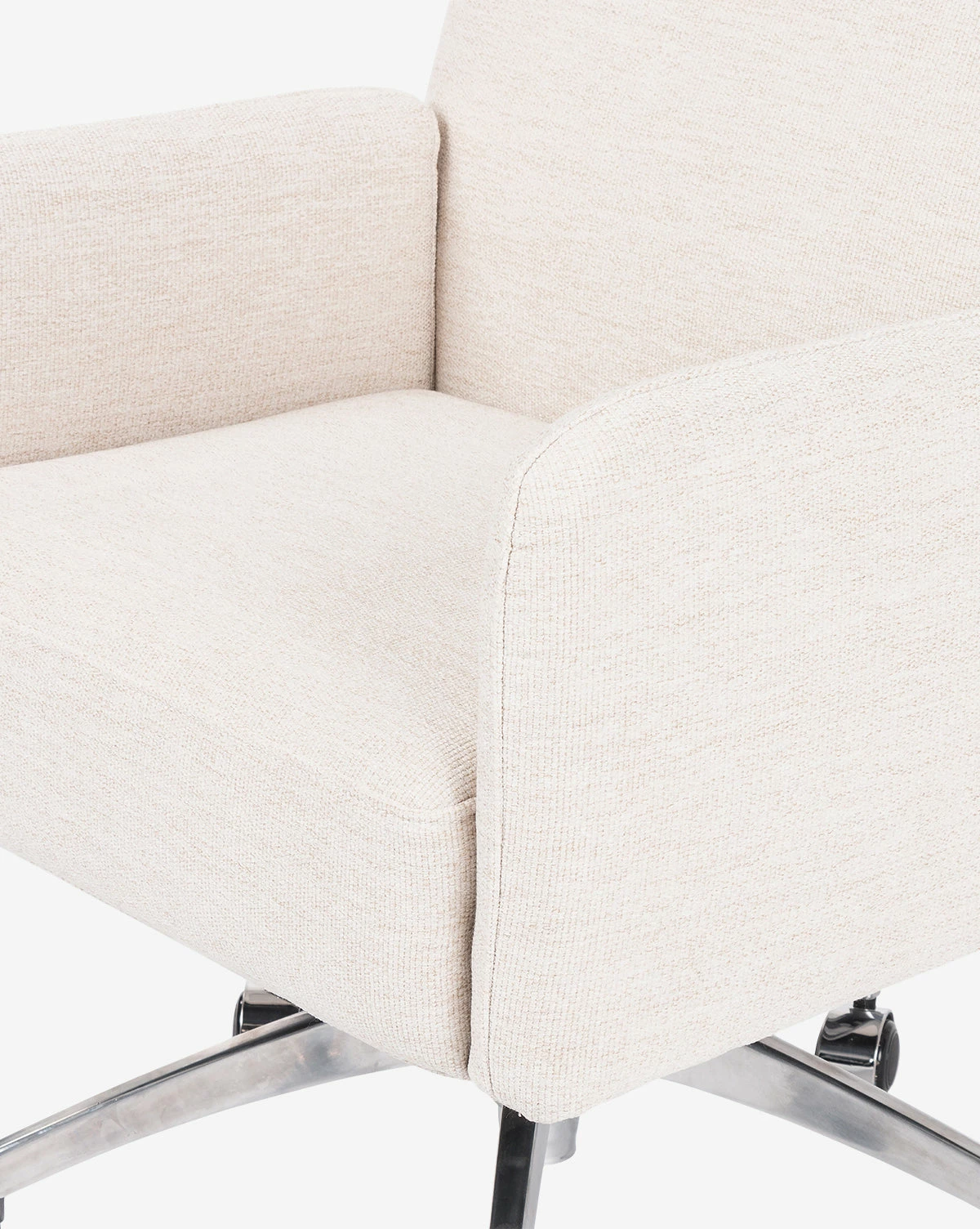 The inviting Kenzo Desk Chair is practical and comfortable, giving a modern feel to your home office. With an oat upholstery, the chair features a polished aluminum swivel base with height adjustability.