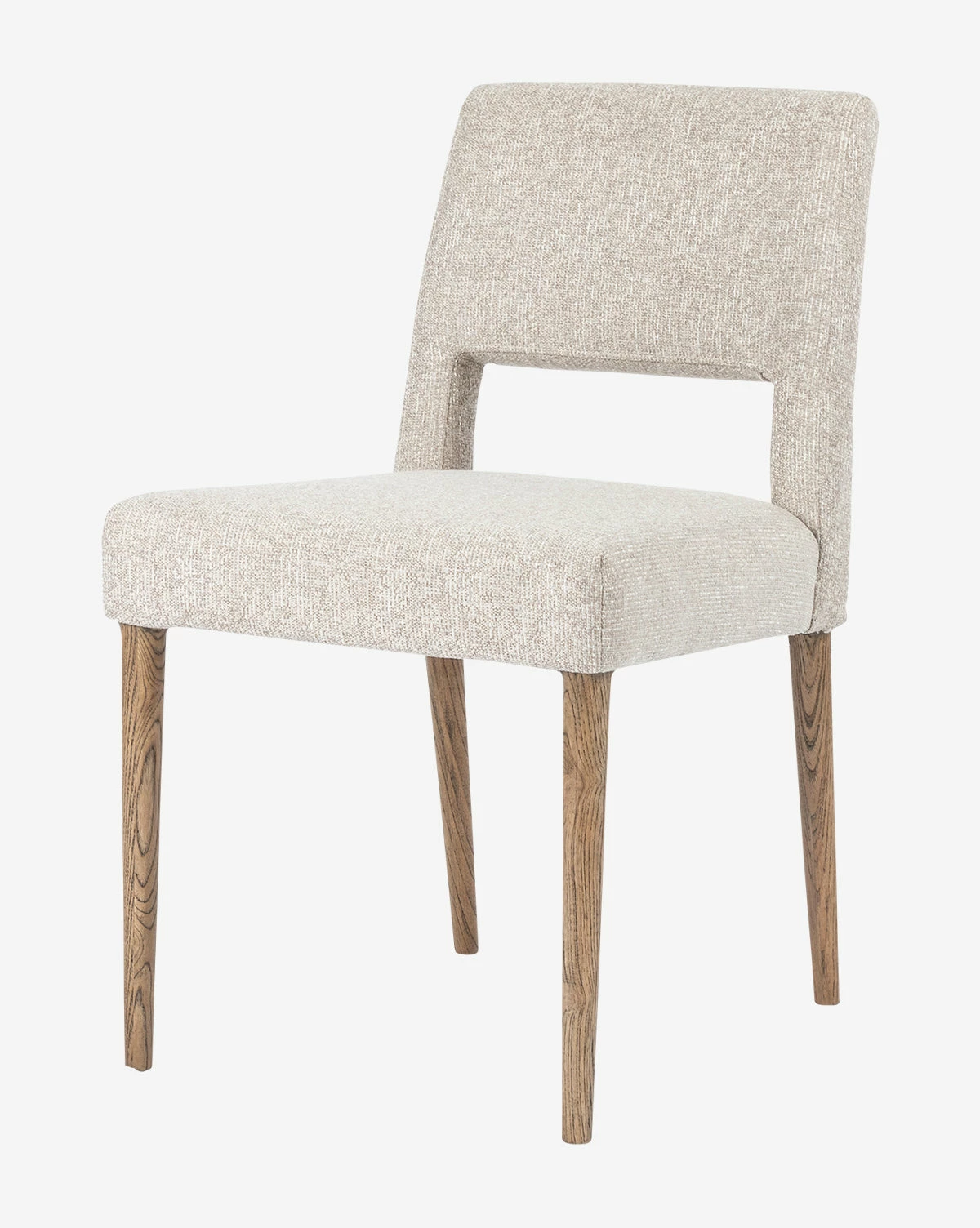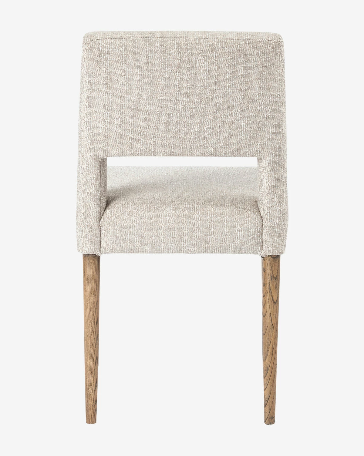 With a simple silhouette and decidedly modern design, the Kiernan Chair makes the most of its contemporary form. With a textural, light taupe upholstered seat and back, this chair brings added interest to your dining table through its dimensional cutout and toasted nettlewood legs.