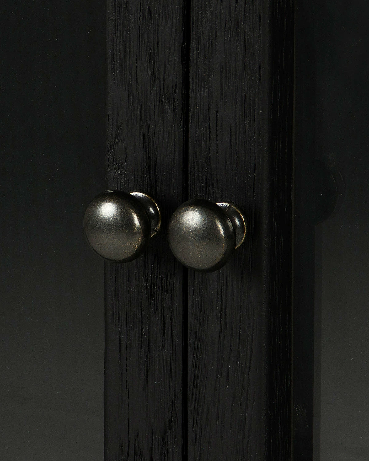 Elevate your home design with the airy form of the Lawley Cabinet. Crafted from drift oak, this simple curio cabinet sits atop a pedestal of waxed, black iron. Glass doors and a traditional natural stain create the perfect home for your treasured pieces.