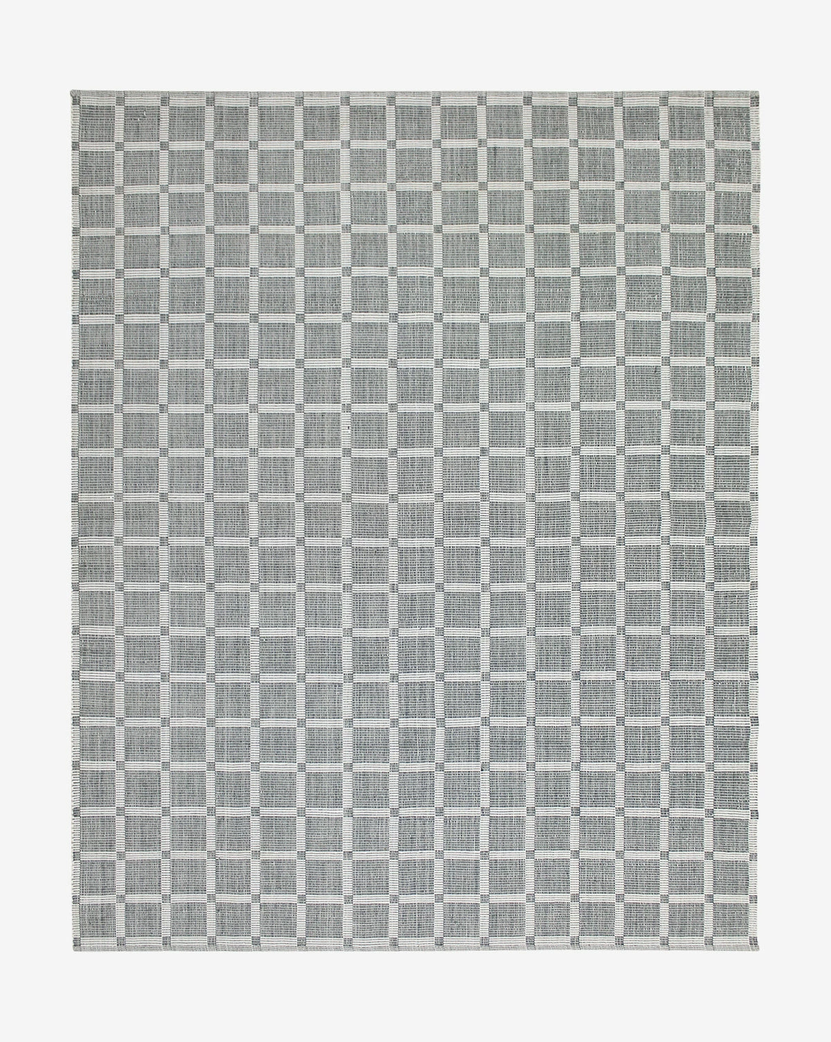 Handwoven from 100% PET, the Leon Indoor / Outdoor Rug features a graph pattern in a palette of slate blue and white. Easy to clean, this rug is ideal for high-traffic areas and outdoor spaces, and its material is soft underfoot.