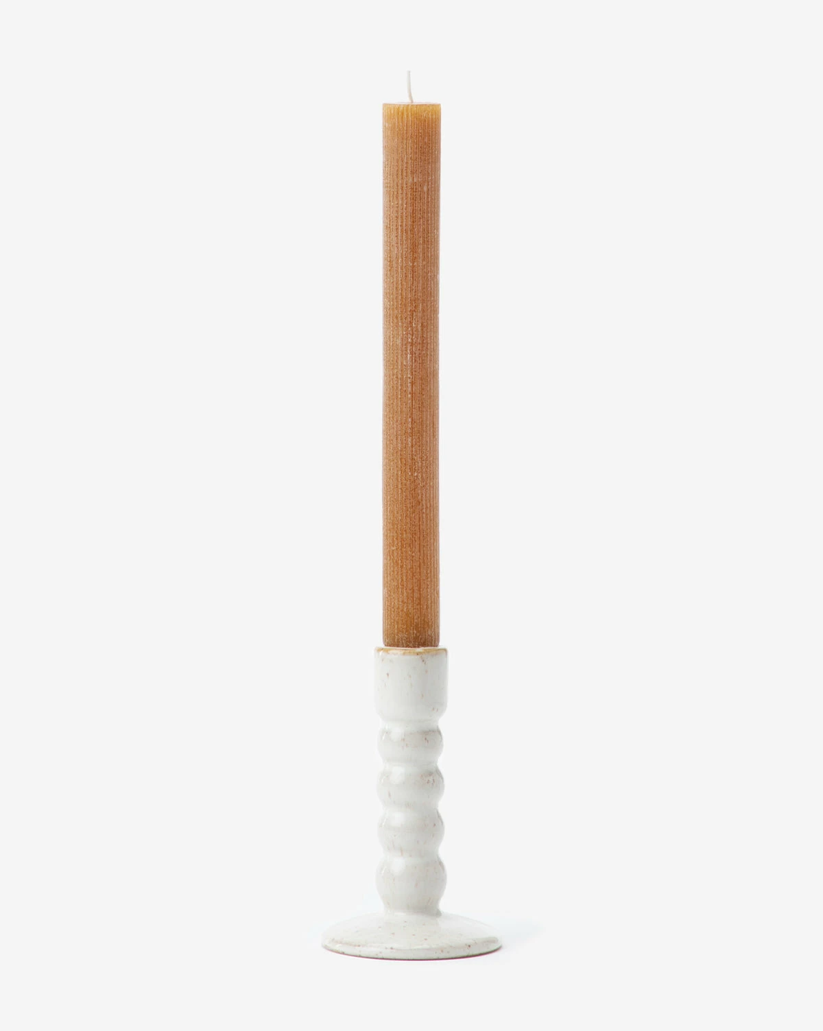 Crafted from stoneware with a hand-applied white glaze, the Mae Ceramic Taper Holder brings a classic feel and shapely personality to your mantel or console vignette. Its simple stacked shape brings subtle interest to your taper candles wherever they are styled.