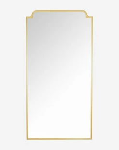Nuanced and classic, the Magdalena Floor Mirror brings subtle elegance to any room. Shapely elements at the top of the frame add subtle detail and balance to the elongated shape of the floor mirror. With a rich gold finish, the mirror creates a welcoming feel in your space.