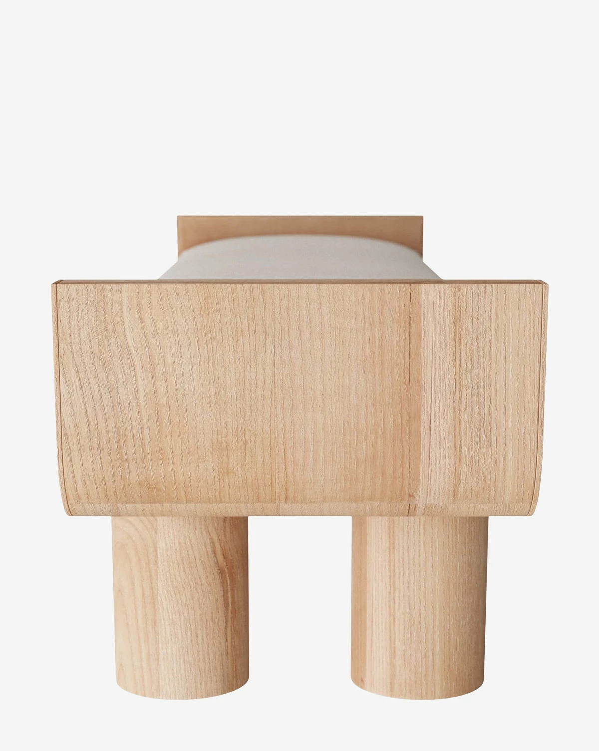 Crafted with an intentionally sculptural design, the Magee Bench blends organic and modern elements. With a curved oak base that holds a soft cushion upholstered in linen, the bench makes a statement and lends comfort wherever it is styled.