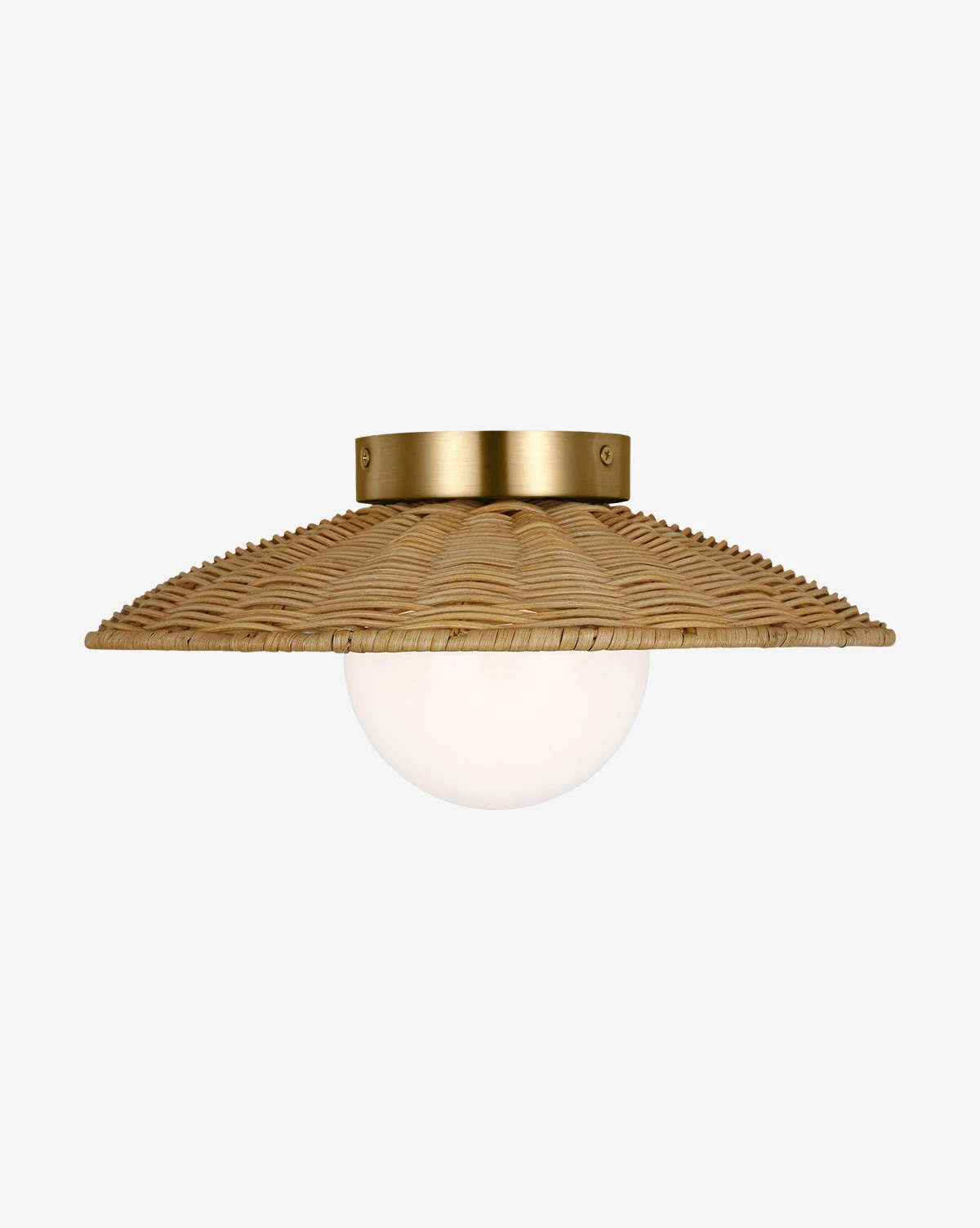 Featuring a streamlined yet organic design and a shade made from natural rattan, the Mari Medium Flush Mount shines bright wherever it is styled. Displaying a milk glass lens globe bulb, this flush mount is beautifully balanced.