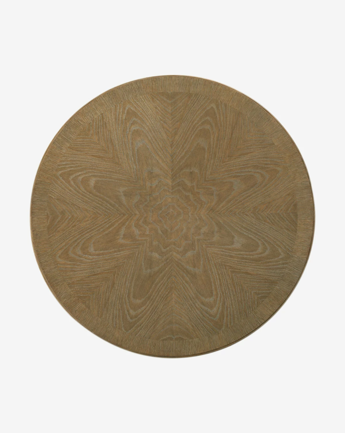 Robust in design and rich in finish, the Marna Entry Table makes a unique statement in the entryway. Crafted from oak with a round tabletop, a central hexagonal column, and a tri-foil shaped base, this table is warm and organic.