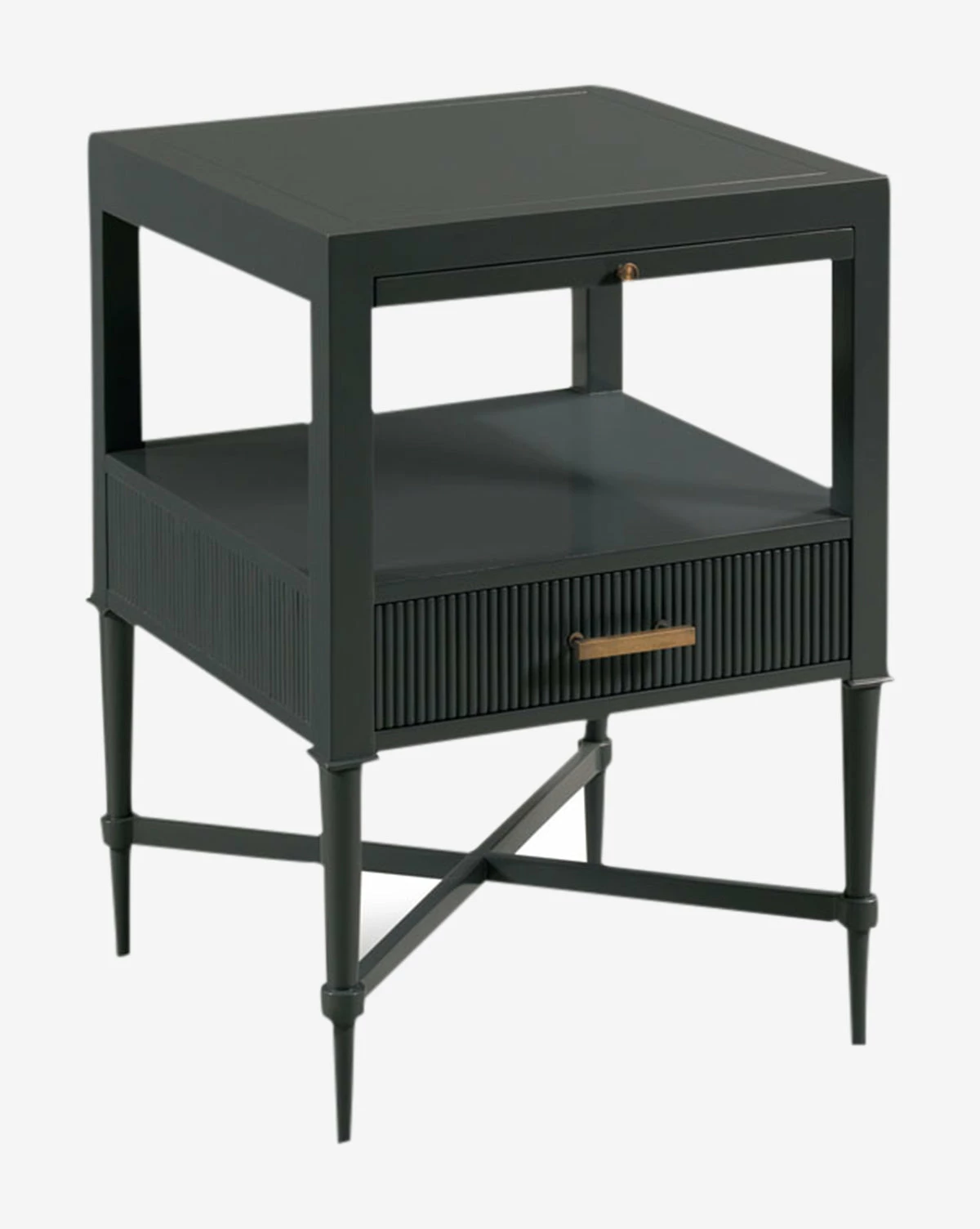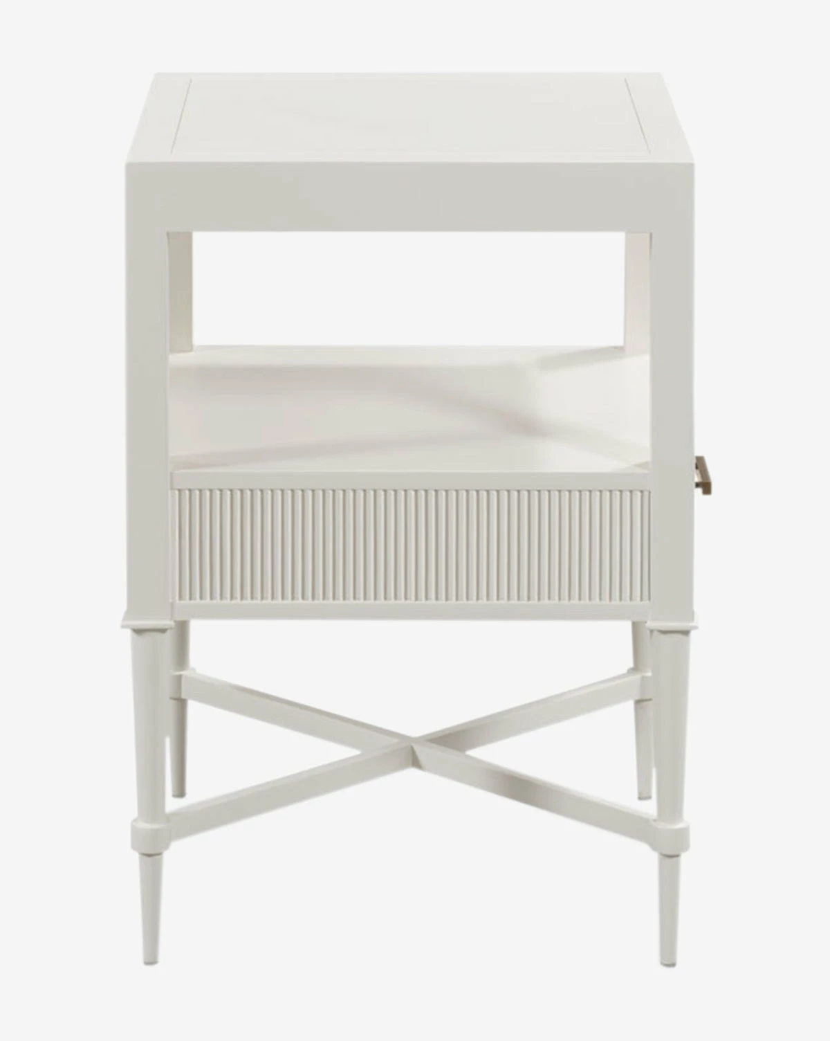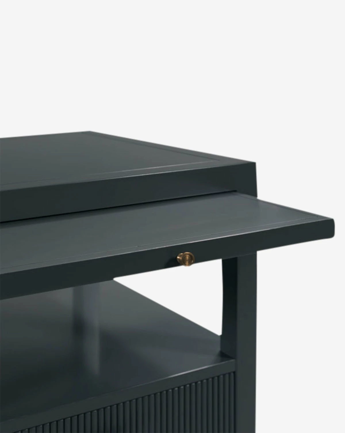 Bringing an airy feel to your space, the Martinez Nightstand is all about the details from the brass hardware to the reeded drawer front. The petite nightstand features a pullout surface that adds to its functionality.