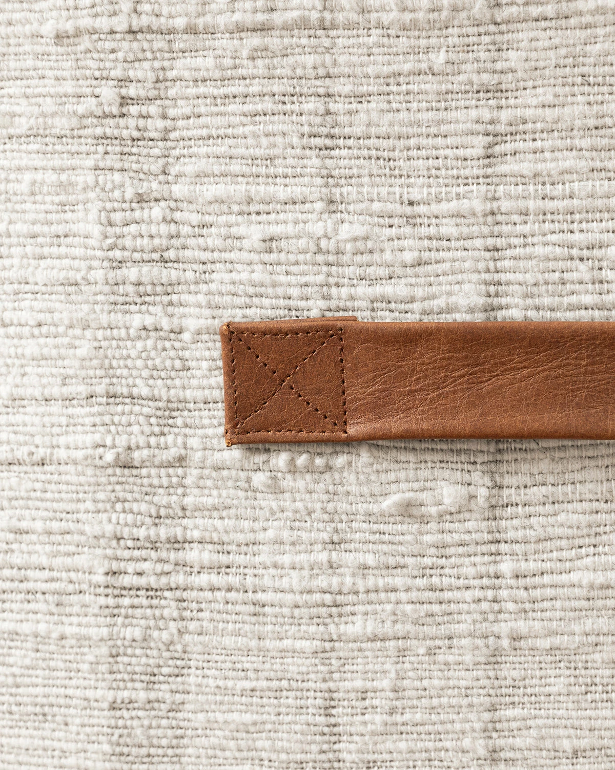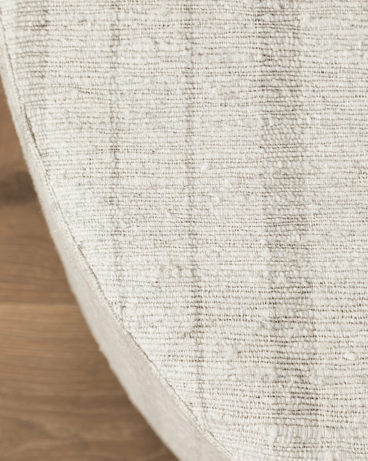 Soft stripes give the McKay Round Ottoman a classic style and visual interest. In a palette of muted gray and cream, this simple ottoman gives nod to traditional fabric ottomans while elevating its overall design with thoughtful attention to its craftsmanship. Small leather additions give added detail to the McKay Round Ottoman, creating a nuance of mixed textures and styles.