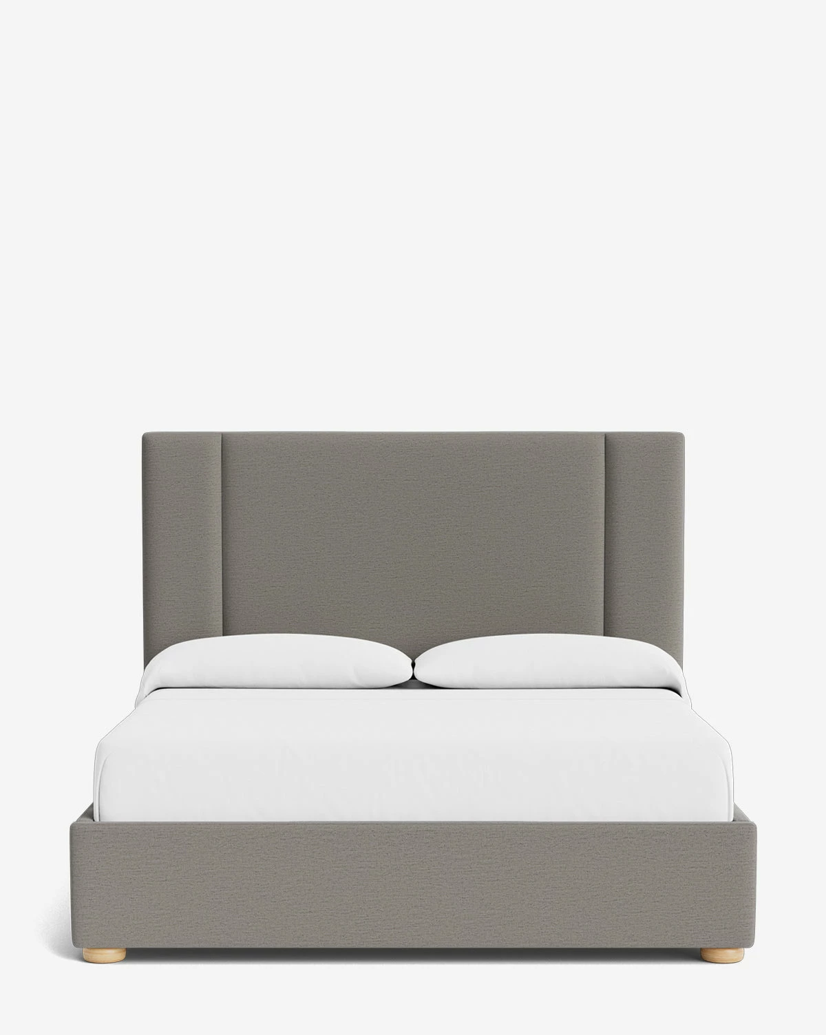 In a bench-made frame upholstered in your selection of high-end fabrics, the Mina Upholstered Bed is an updated take on classic design. With two streamlined channels that frame pillow vignettes and charming but subtle wood bun feet, the bed frame has a modern yet traditional feel.