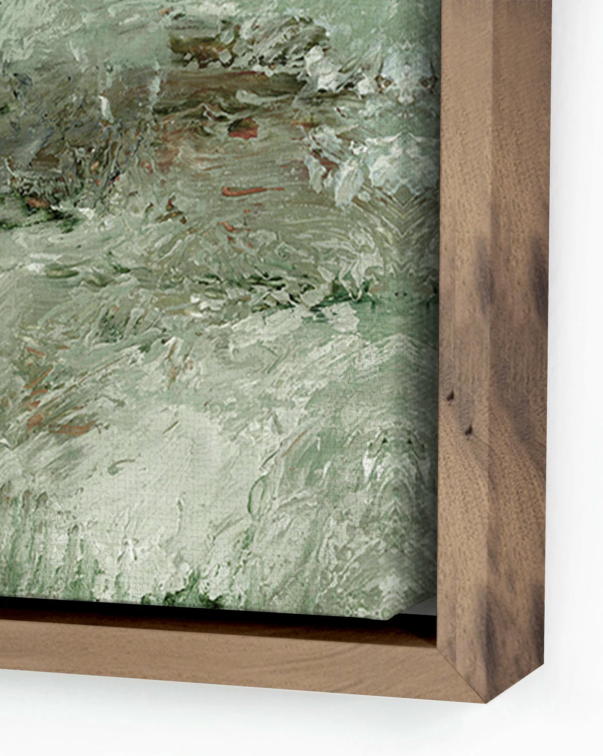 A textural and abstract landscape, Morning Cottage tells a stunning story. With cool and earthy tones, this piece speaks to the charms of rural life and adds eye-catching beauty to your gallery walls.