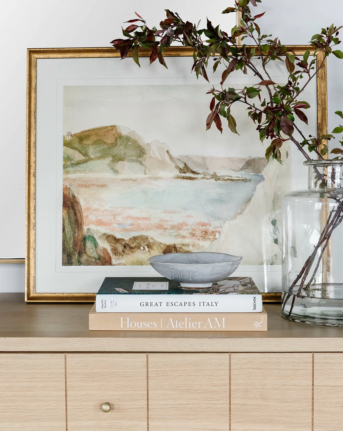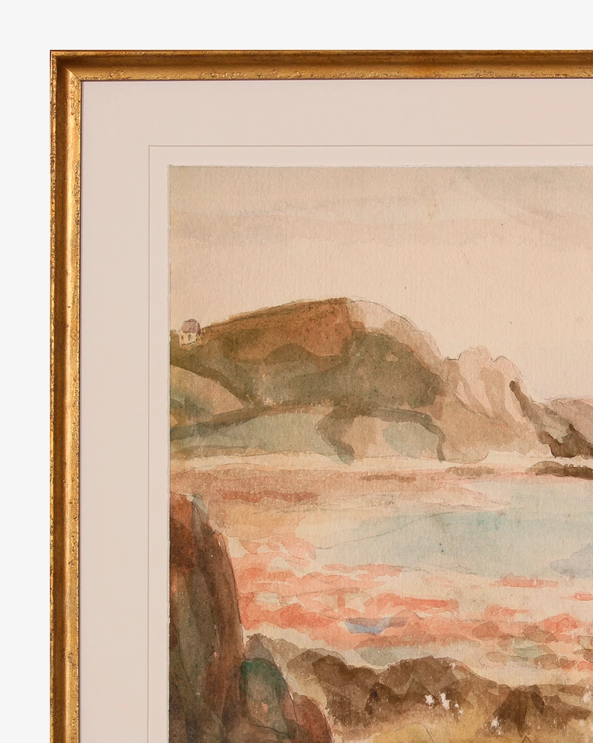 With artist enhanced texture, the serene mountain lake scene of our Mountain Reserve piece features neutral tones creating its beautiful mountainous display. Gray shadows on the face of the rock bring depth, as peachy pink sand adds just the right touch of warmth.Â