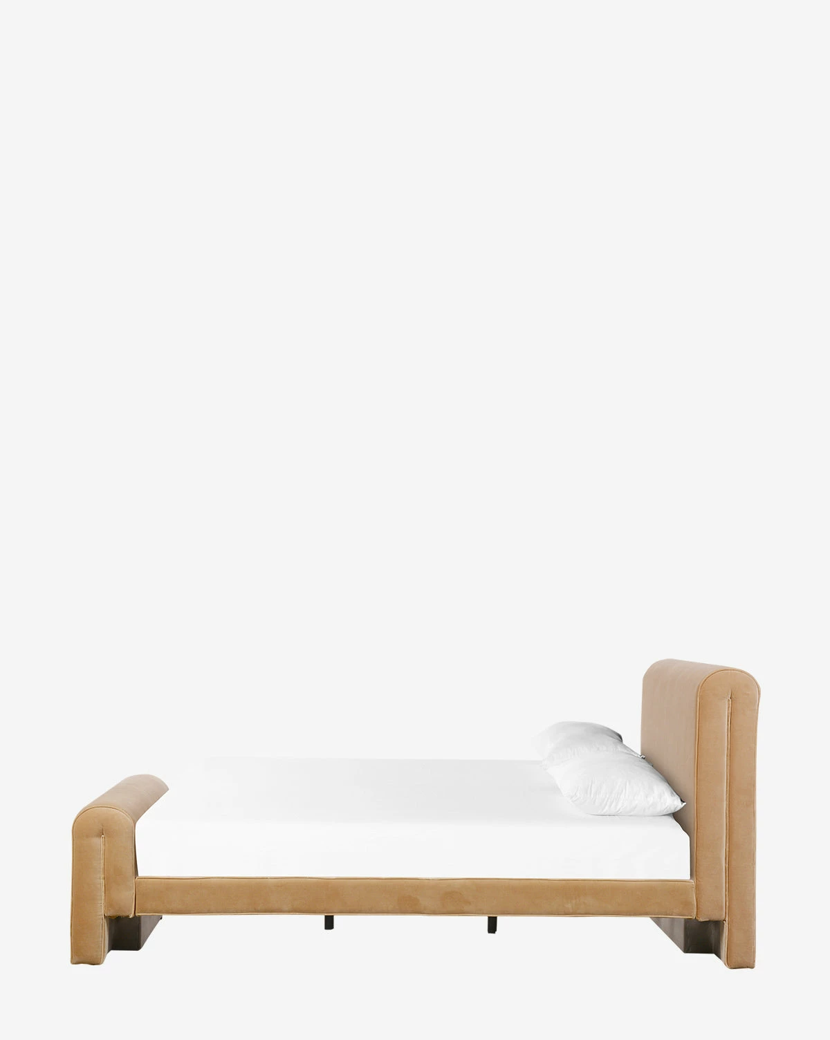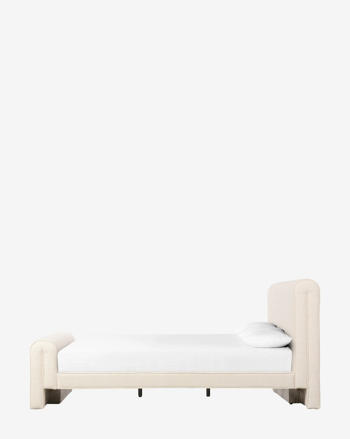 Upholstered in either a camel soft cotton blend fabric or a cream performance fabric, the Mumford Bed brings a streamlined look to your bedroom styling. With a folded design in both the headboard and footboard, the modern design of the bed is subtle and refreshing.