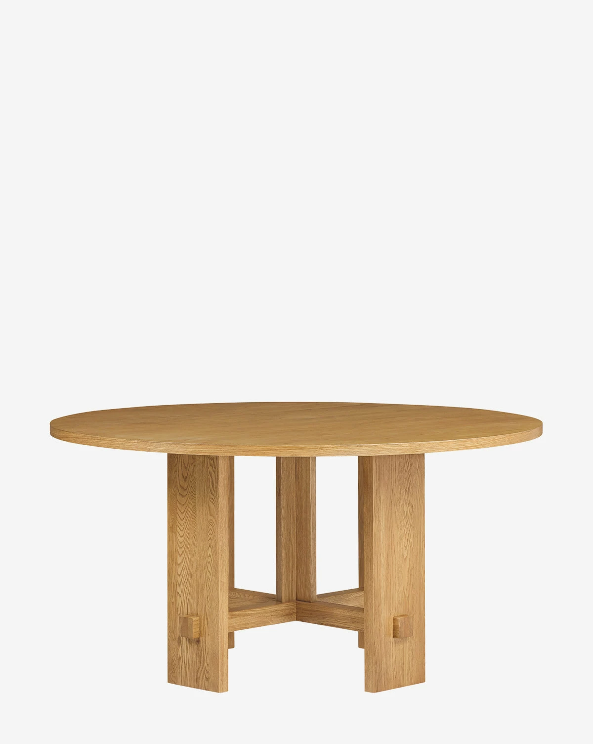 In a classic-meets-modern design, the Newbold Dining Table is crafted from oak with a honey finish. Its architectural frame and natural details make it the perfect base for any dining setting.