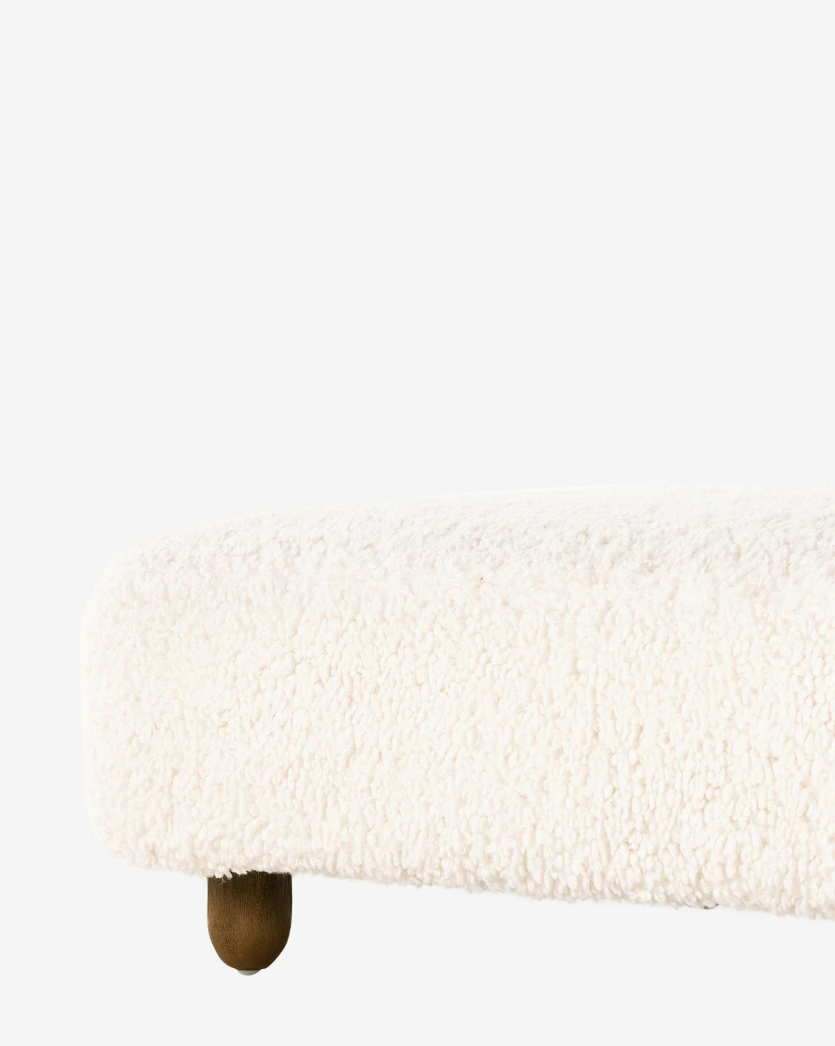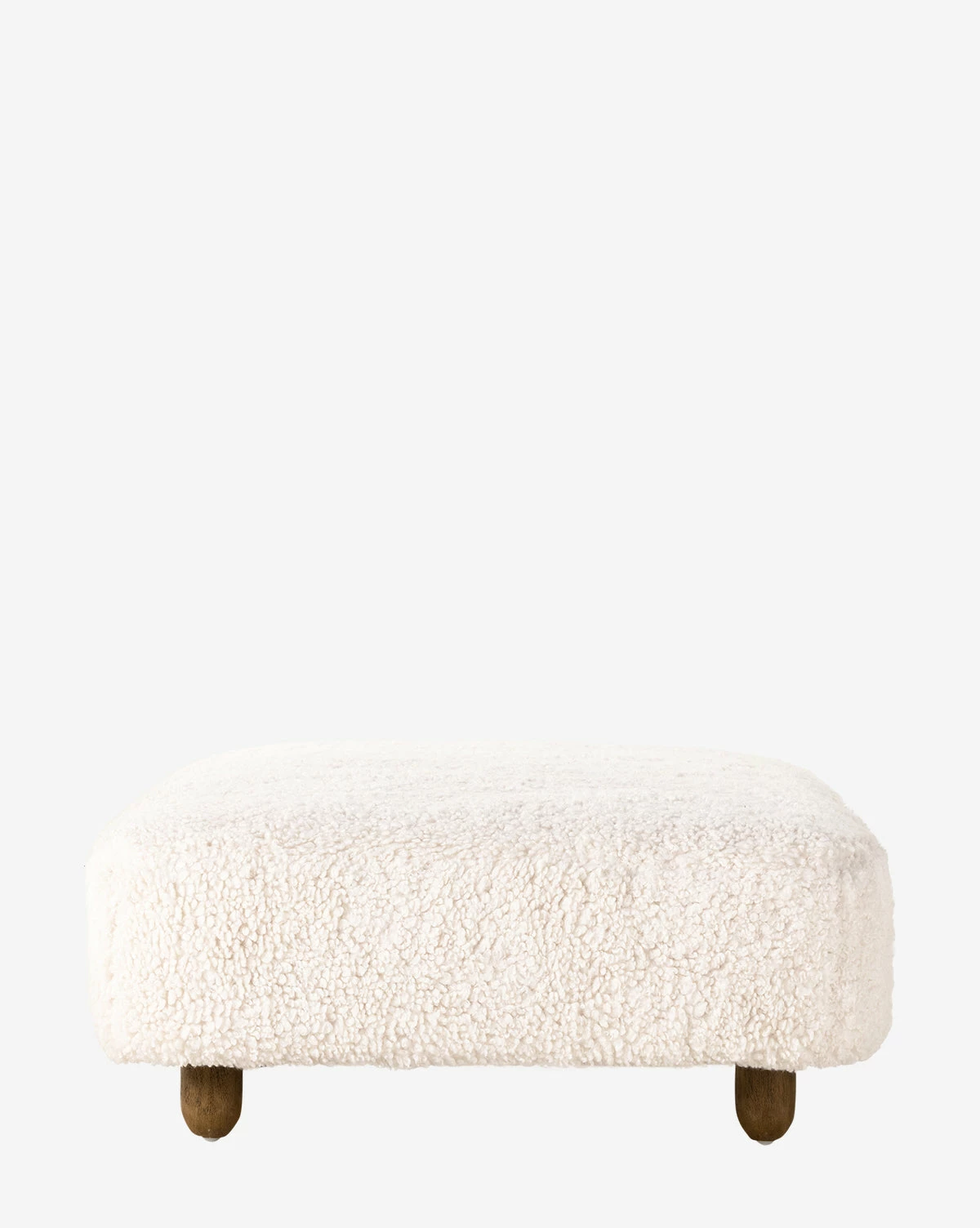 Upholstered with a high-pile, faux Mongolian shearling, the Newton Ottoman effortlessly elevates your living space with an inviting feel. Its solid parawood legs are wire-brushed for a subtly vintage feel and natural detail.