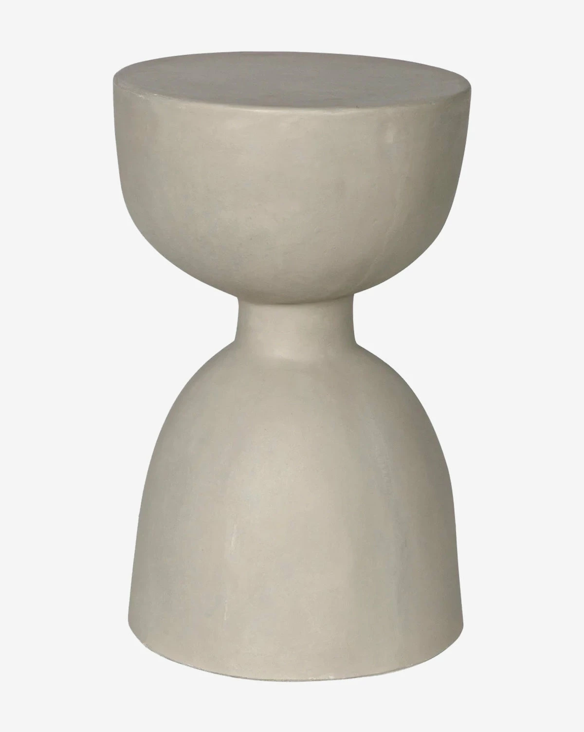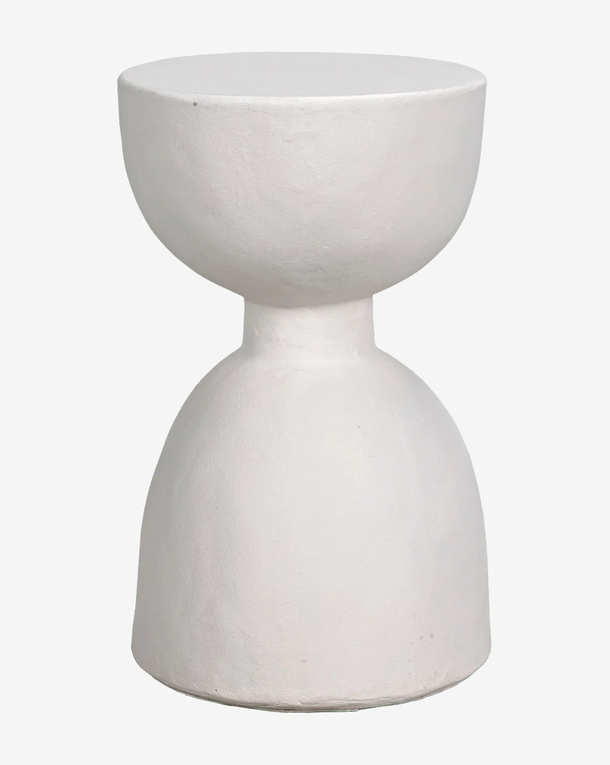 Featuring a beautiful silhouette, our Calysta Side Table adds modern dimension to your space with its smooth curves and hourglass design, while its creamy hue lightens the visual weight of its fiber cement crafted form.