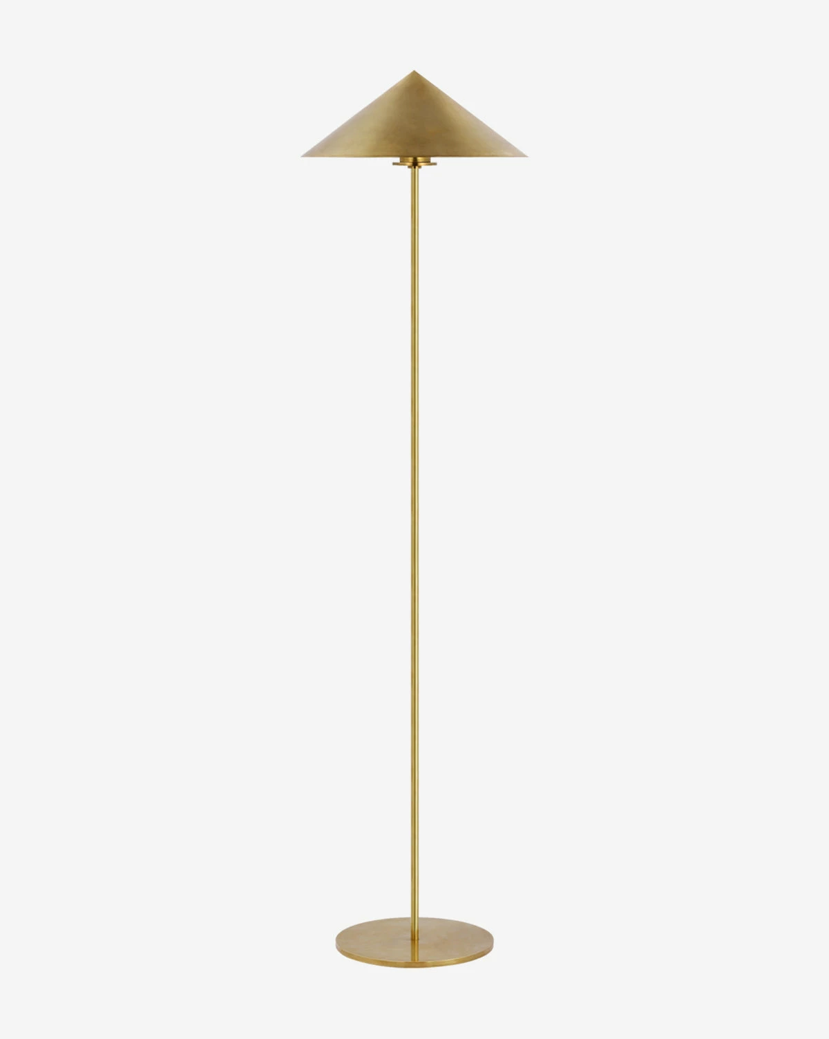 With a conical shade and slender structure, the Orsay Medium Floor Lamp is an updated take on metallics and modern design. Available in three finishes, the lamp presents a bold silhouette and warm light in your home.