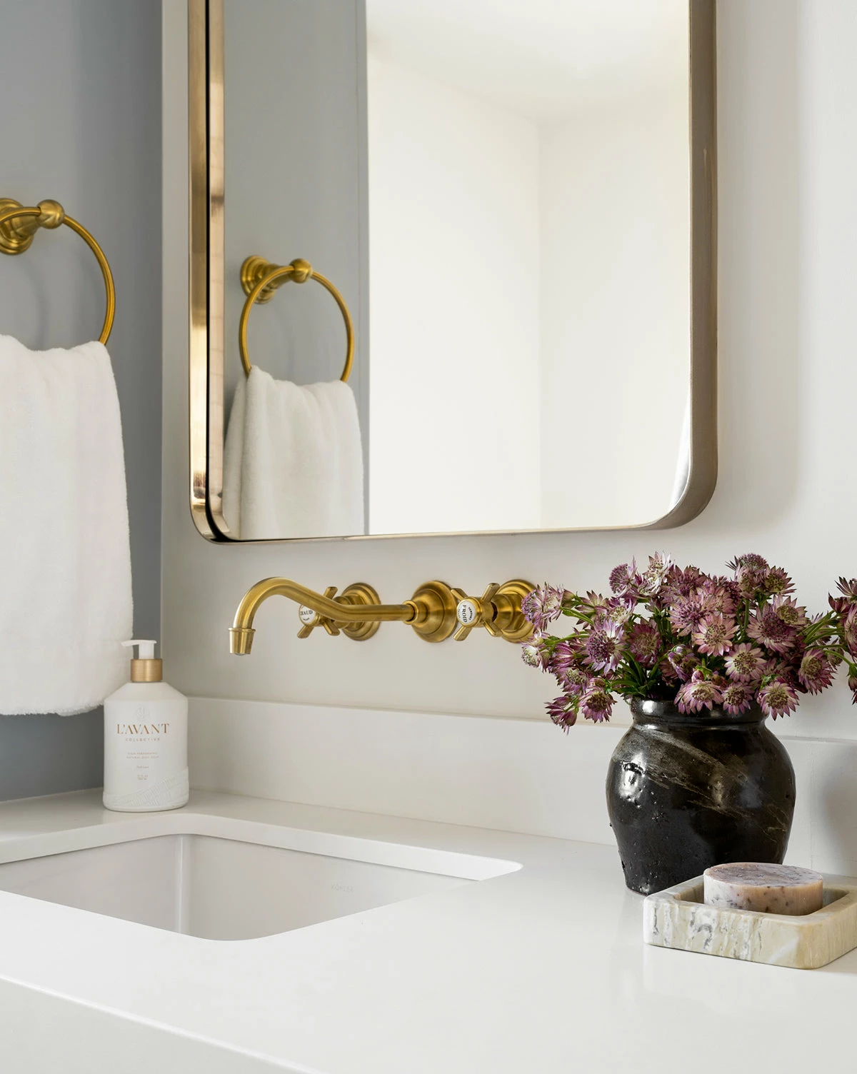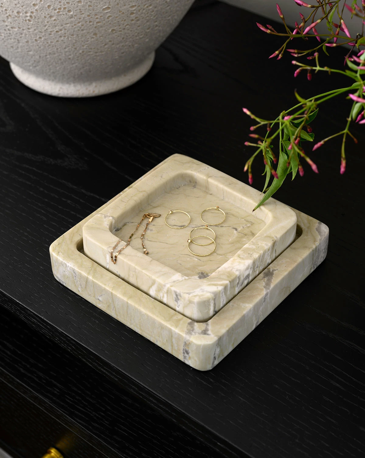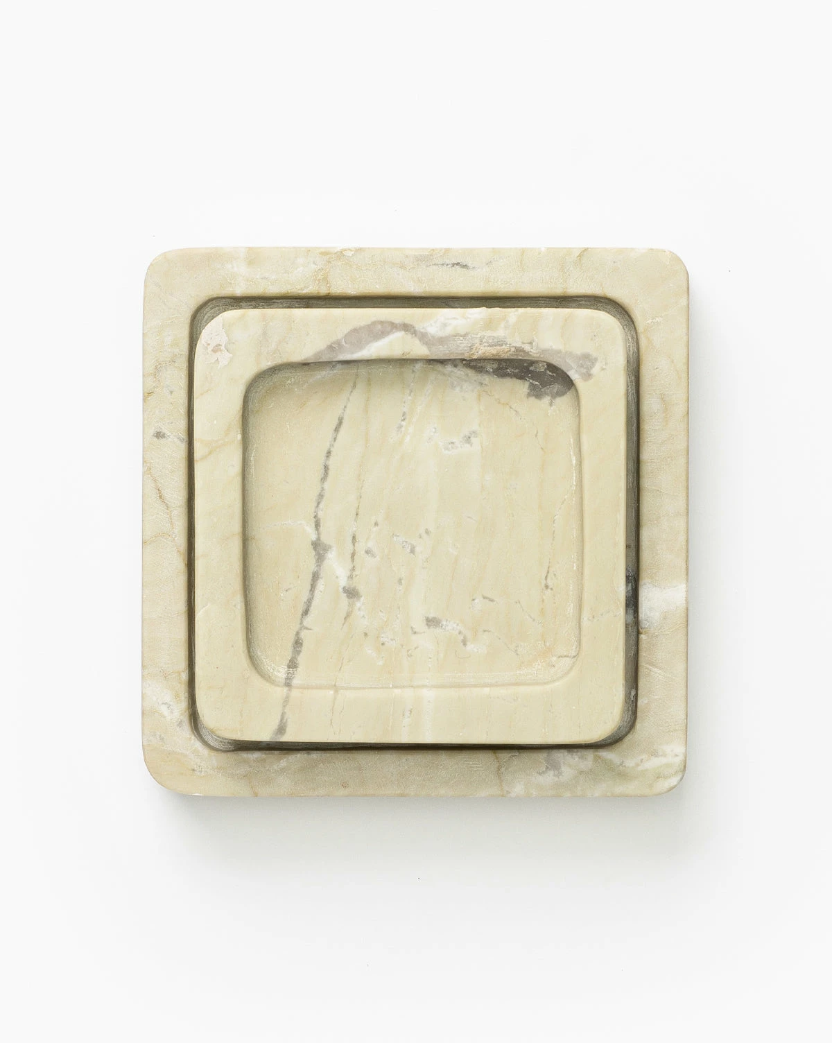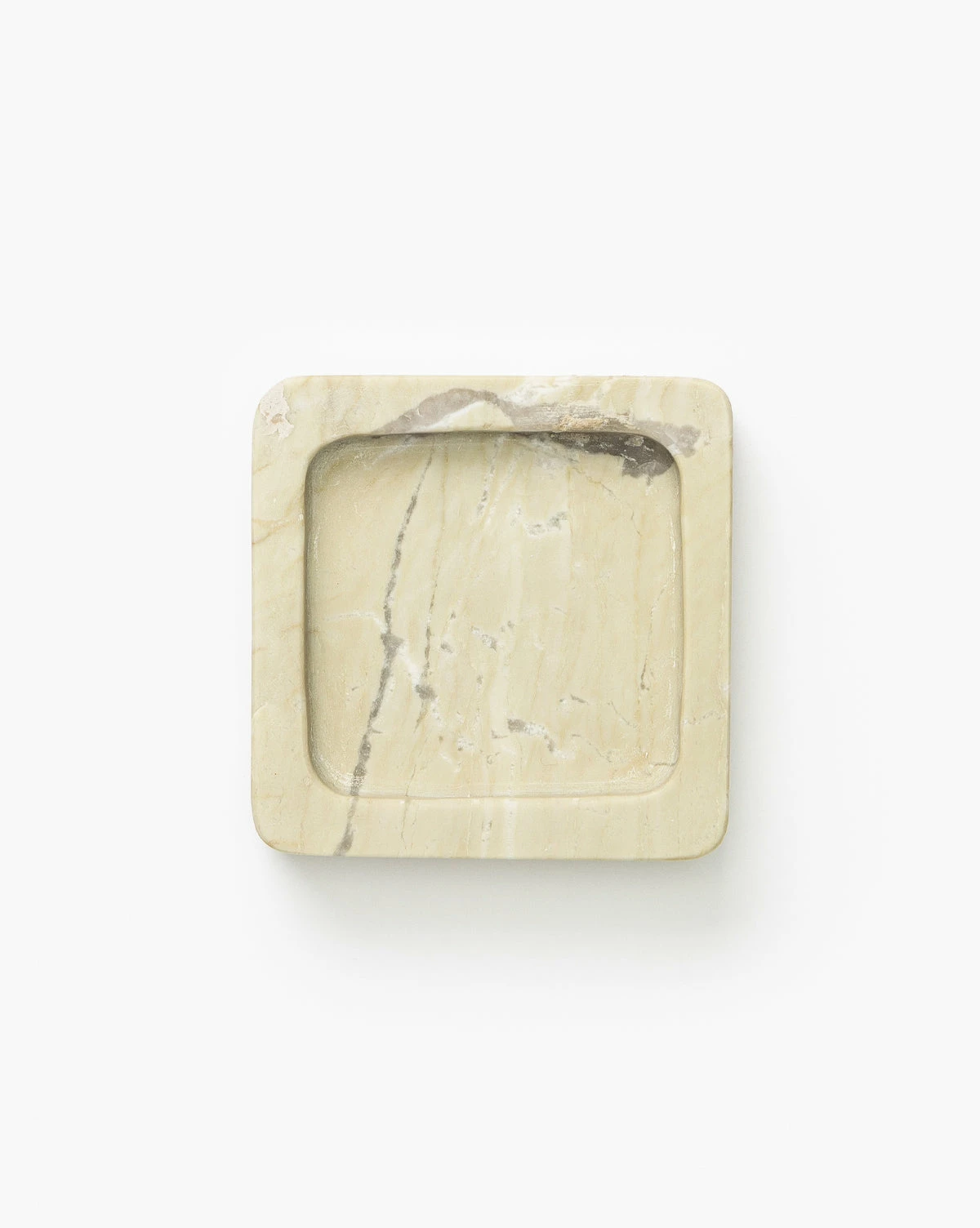 Crafted from oyster marble in a subtly curved square design, the Oyster Marble Tray has incredibly unique veining that varies from piece to piece. Its shallow rim and bold, square design are eye-catching, and its warm coloring adds a welcoming tone to the space.