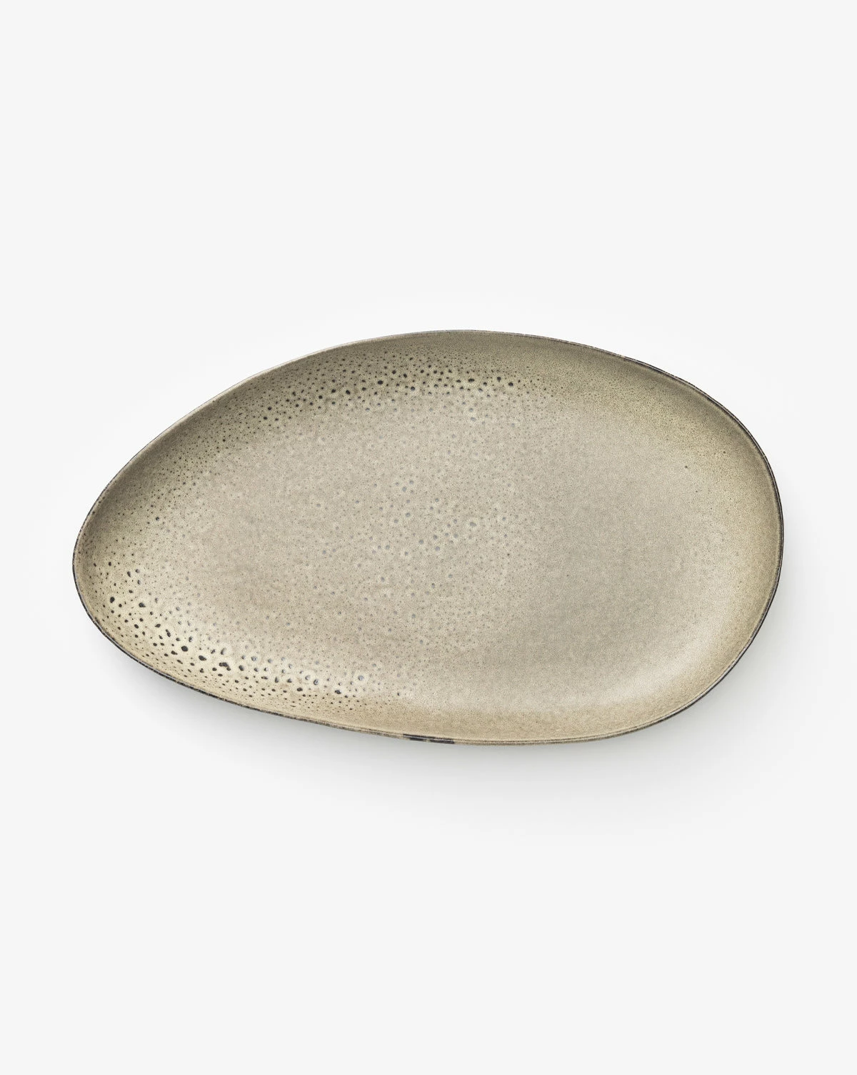 The traditional serving tray is given delicate nuance in the Oyster Oval Tray. The tray’s form is inspired by an oyster shell and finished in a nature-inspired glaze. Bringing a subtly organic feel to your tabletop, the oval tray is a hosting staple. Â