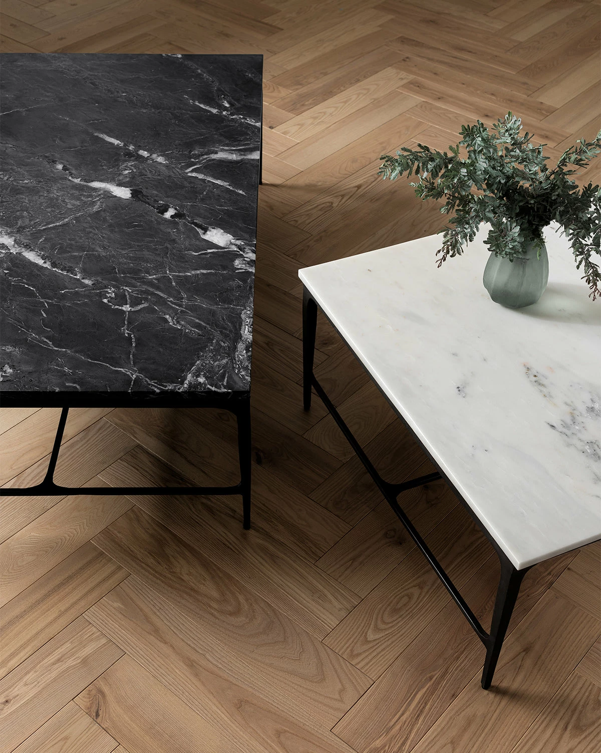 Giving contrast to your space, the Parker Coffee Table anchors the room with its construction and design. Its marble table top and metal frame create subtle visual weight, bringing an element of stability to the room with a simple, contemporary design that emphasizes material and line.