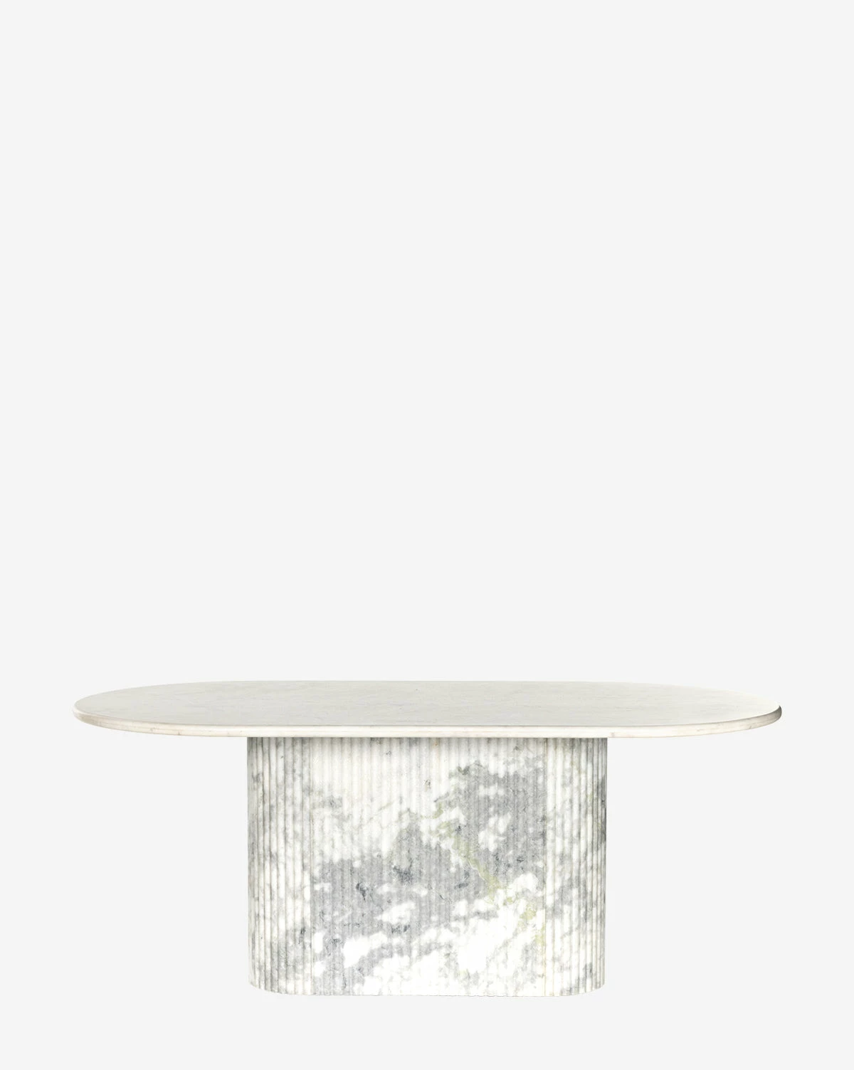 Inspired by Italian design, the Patrick Dining Table features a scalloped marble base that gives height and texture to this stunning dining piece. Made from solid marble, the dining table brings a smooth yet organic feel to elevated, contemporary style.