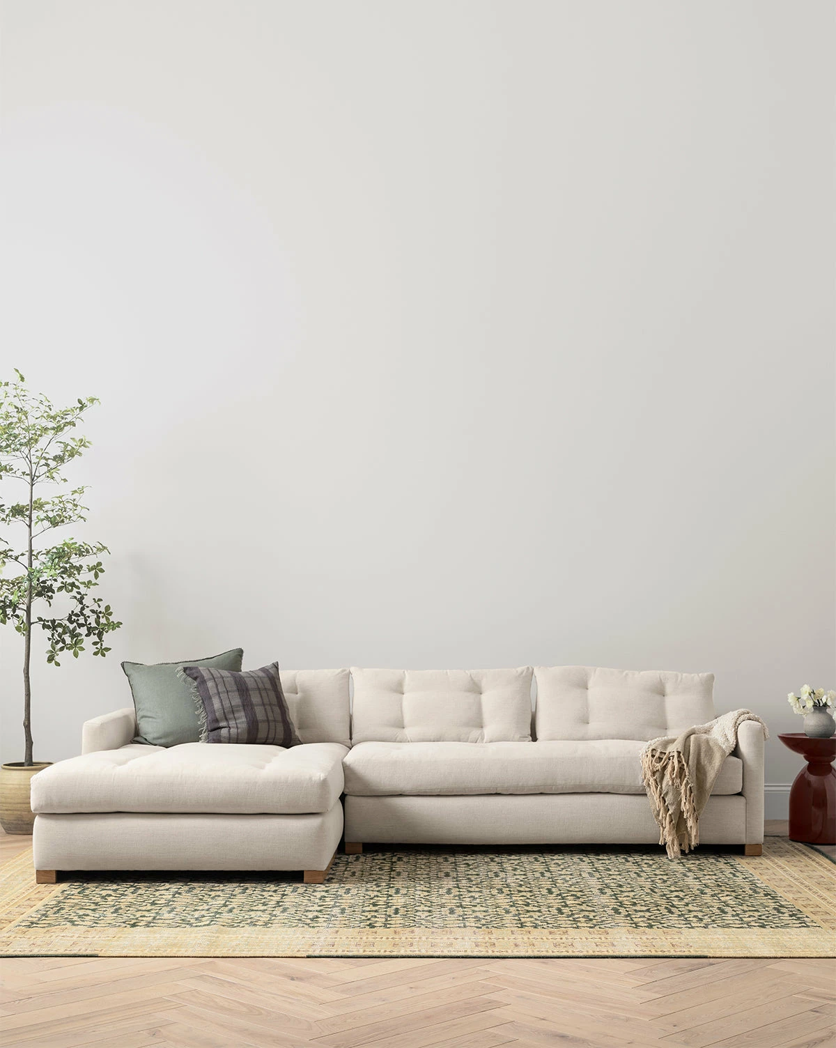 Tufted cushions and simple wood feet give the Pattinson Sectional a subdued, modern feel while nodding to traditional design. With a bench-made frame and down-wrapped cushions, every made-to-order sectional is crafted by artisans with the highest-quality materials in a variety of fabrics and colorways. Refreshingly simple and effortlessly cozy, this sectional is a beautiful foundational element in gathering spaces throughout the home.