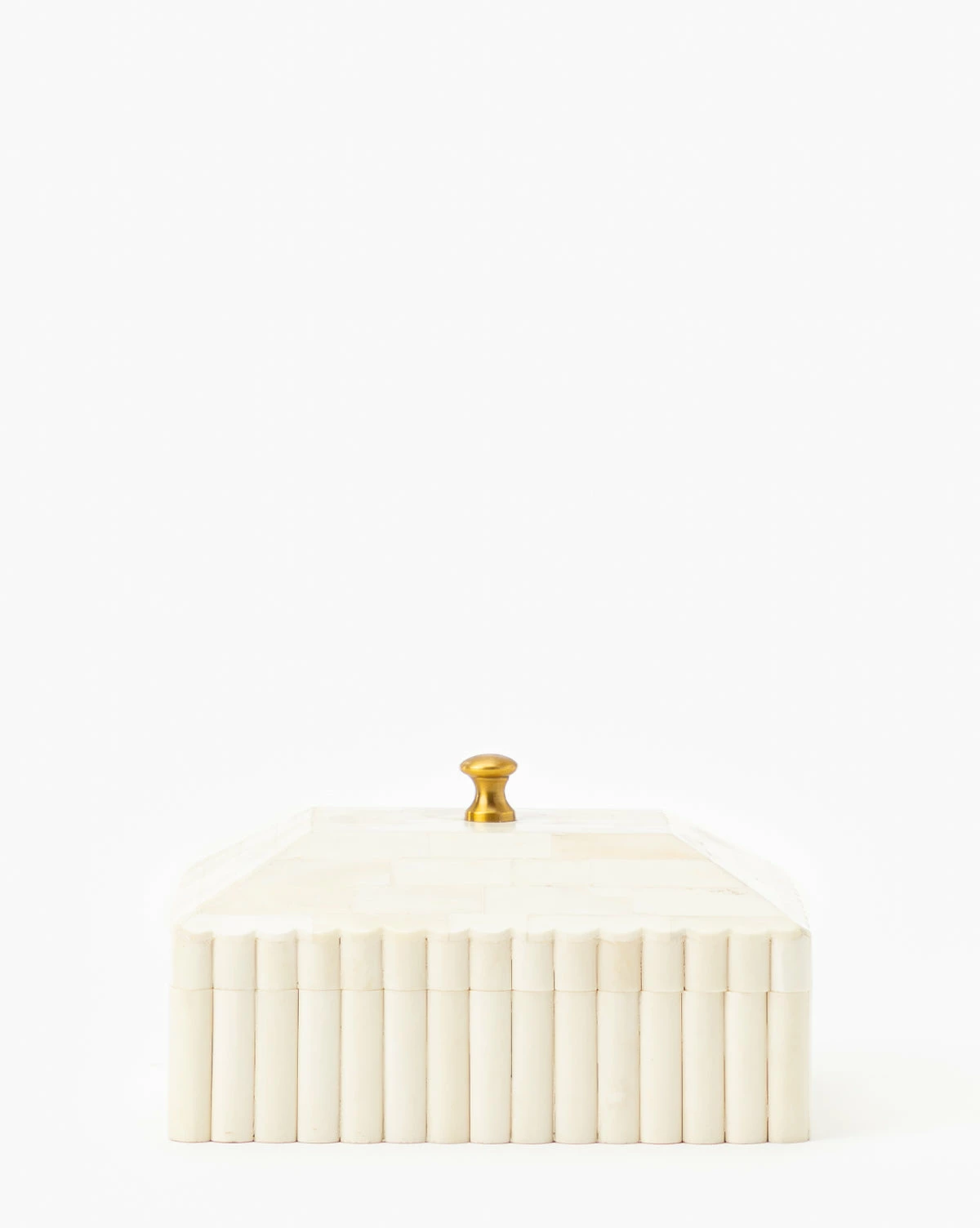 From the beautifully fluted sides to the simple brass handle, everything about this box makes a statement. Used as a catch-all in your entryway, or simply styled in built-in shelving, our Plateau Lid Box easily elevates your existing decor for a more intentional, designer look and feel.