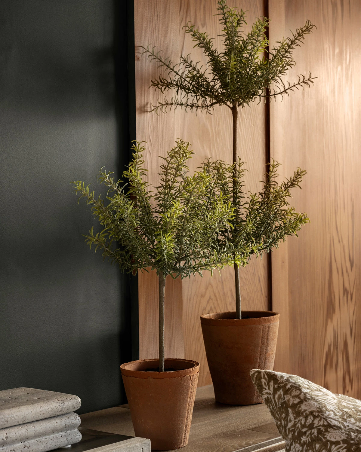 Realistically capturing the artful form and palette of a rosemary plant, the Potted Faux Rosemary Topiary is the perfect complement to your decor vignettes. Between the lively tone and texture and the terracotta pot, the faux plant brings interest and dimension to your space.
