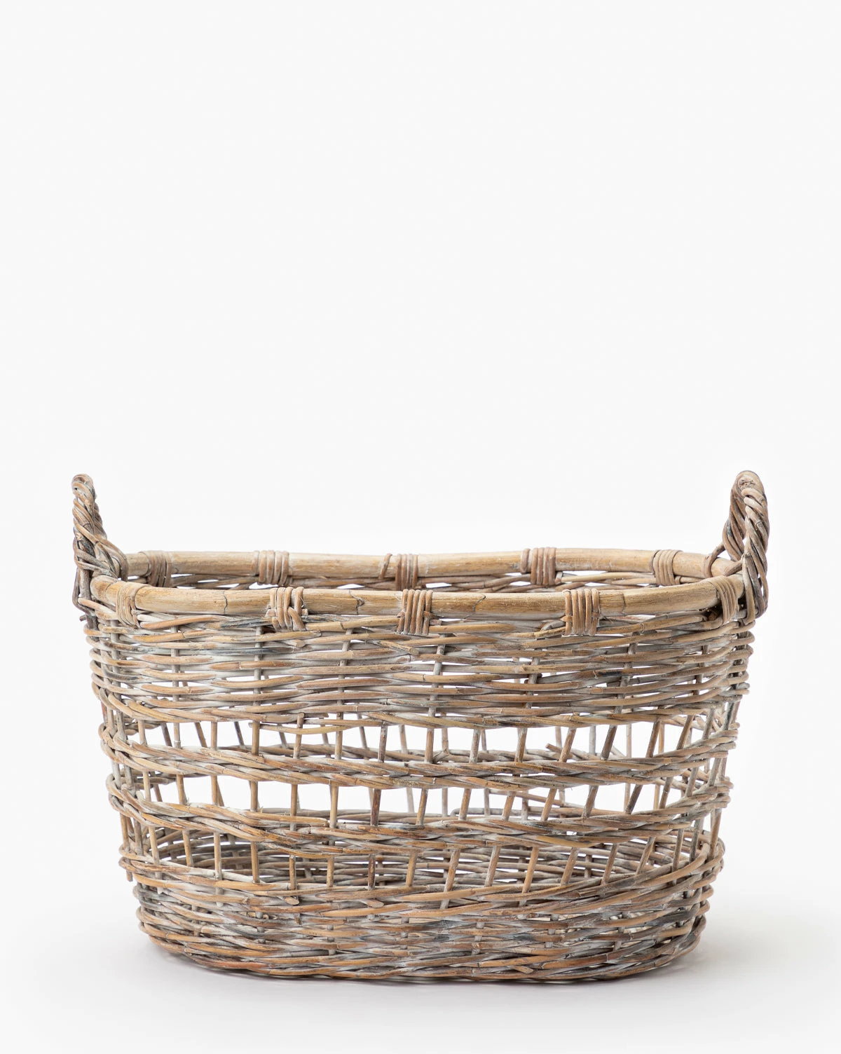 The Rattan Handled Basket uses varied weaves to create a unique pattern that puts a new twist on traditional rattan. Its timeless design can be styled next to sofas or in bedrooms, acting as a beautiful accent to textiles and throws.