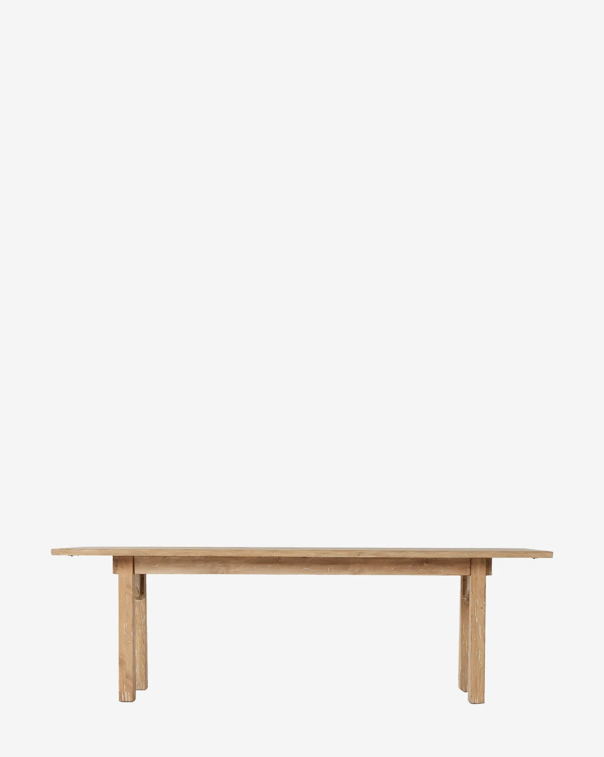 Inspired by Swedish design, the Reamon Dining Table is grand in size, easily seating ten people. Made from solid pine, the arched base cutouts lend balance to the rectangular tabletop and lend elevated details to your home.