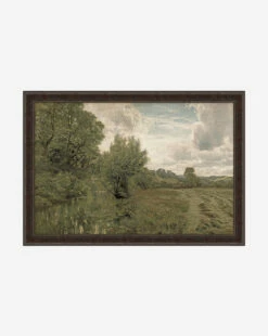 Conveying intricate detail in a lush meadow, River at Dawn is a captivating piece through its use of color and a full composition. A giclee print on canvas, the piece is presented within a dark walnut frame for a gallery-quality treatment. Â